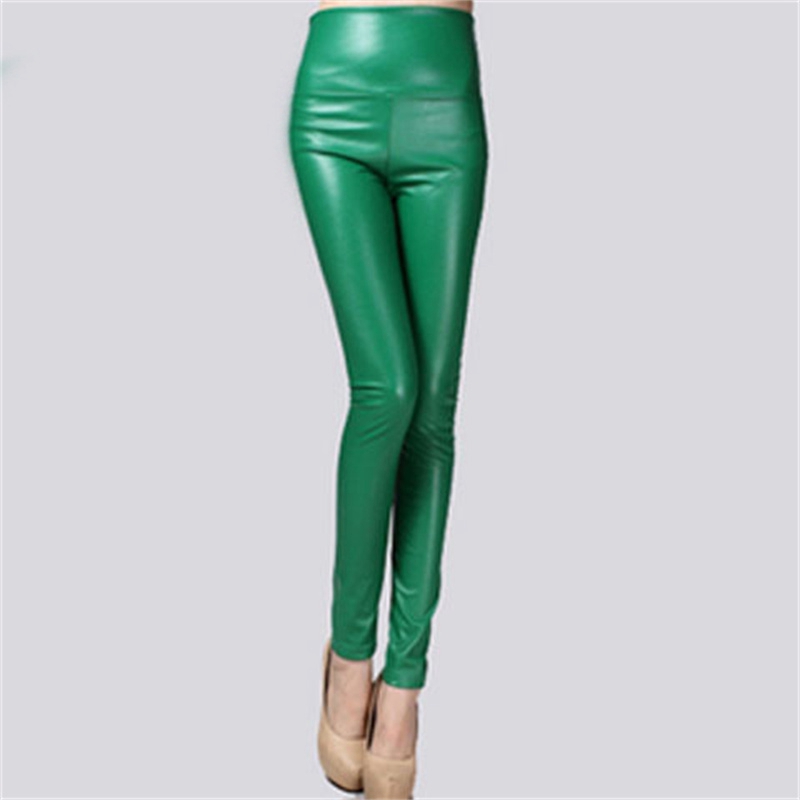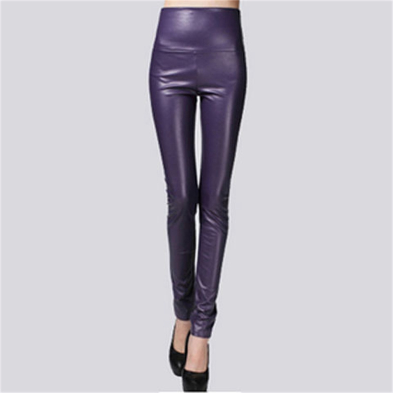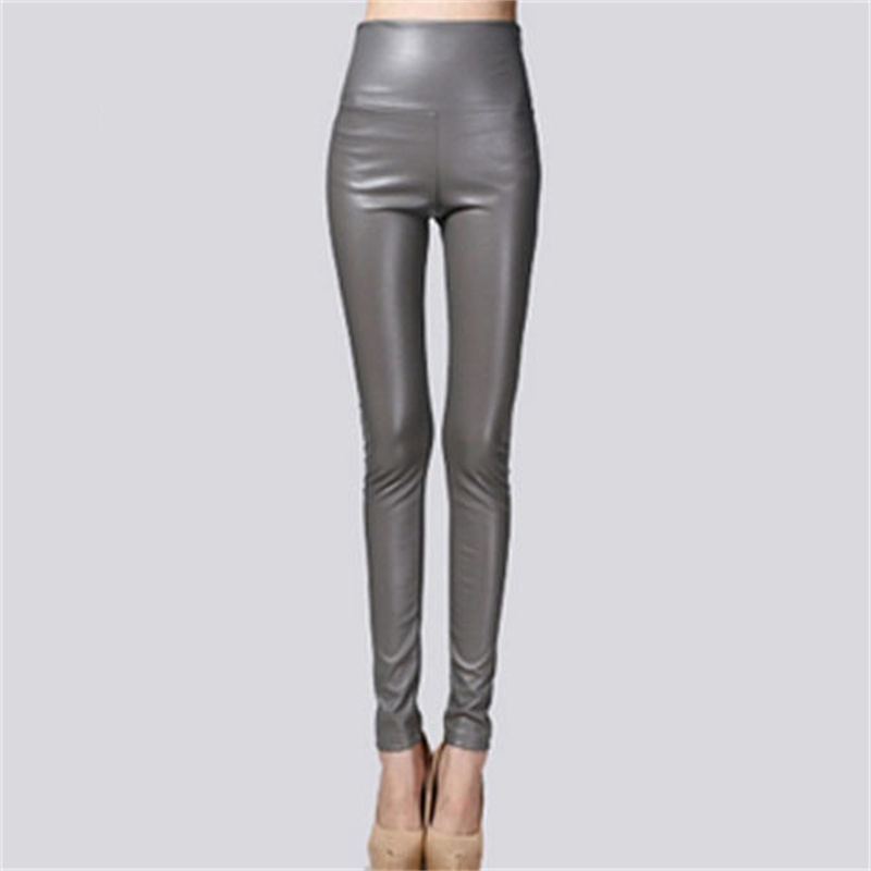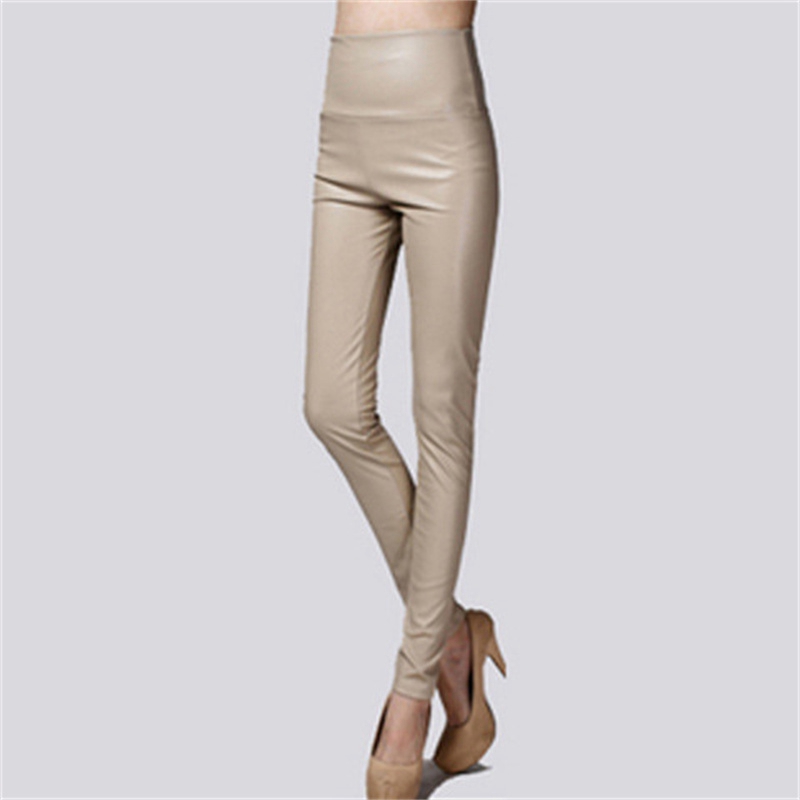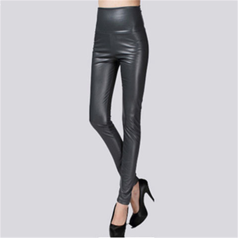 Elastic Leggings Outer Wear PU Leather Solid Color Plus Thick High Waist Tight