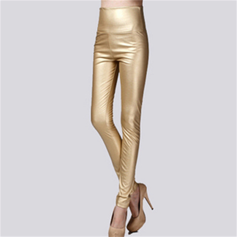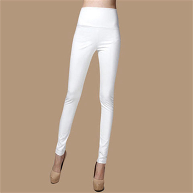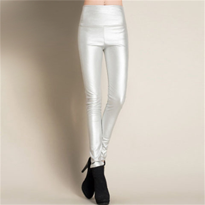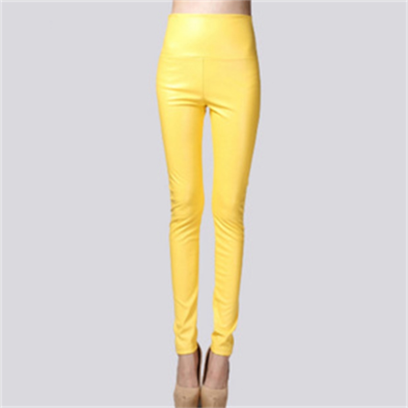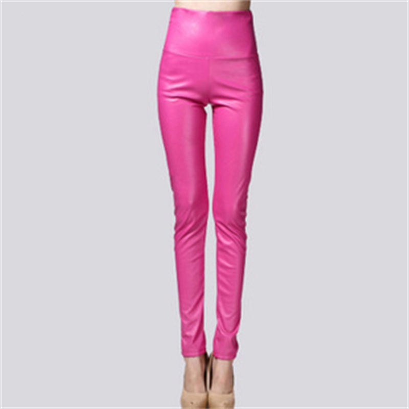 Elastic Leggings Outer Wear PU Leather Solid Color Plus Thick High Waist Tight