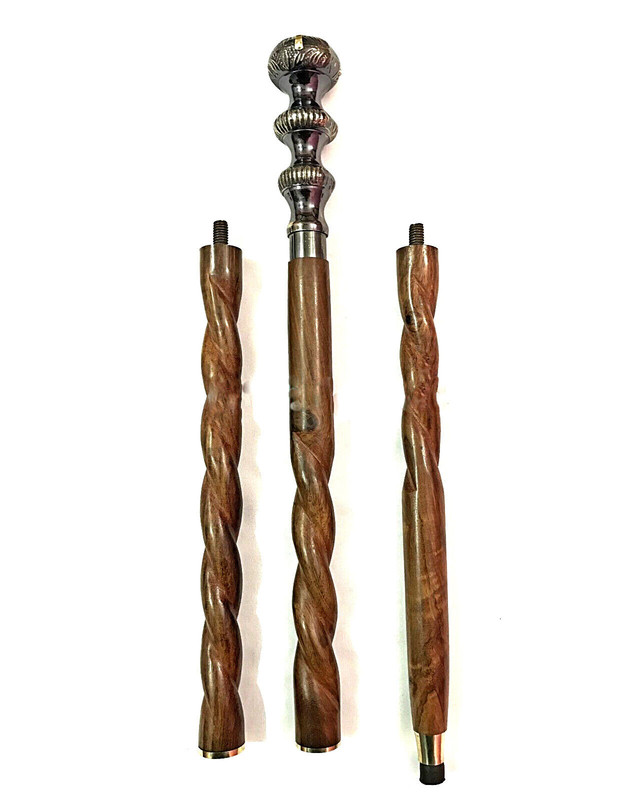 - The Handmade Indian Walking Stick Has A Stunning Design With Plenty Of Old World Charm. The Walking Stick Wood Shaft Is Fashioned Out Of Wood, An Indian Hardwood That Has An Exceptionally Handsome Grain. Very Hard And Durable, The Hardwood Resists Wear And Tear, So You Won't Have To Worry About This Walking Cane Becoming Damaged Even If You Carry It Daily. Pairing Perfectly With The Walking Stick Wood Shaft Featured In The Design Of The Handmade Indian Walking Stick Is Its Elaborate Handle. Fashioned Out Of Brass, The Handle Has A Striking That Contrasts Nicely With The Dark Finish Of The Wood. The Handle Is Ideally Shaped To Fit Comfortably In Your Hand. The Brass Has Been Carefully Worked With Hand Tools To Give It A Scroll . Not Only Is This Raised Surface Attractive, But It Also Will Help You Hold On Tightly To The Walking Stick, Even If Your Hands Are Sweaty. The Handmade Indian Walking Stick Was Designed With Safety In Mind As Much As Style. That's Why We Place A Rubber Tip On The Bottom Of The Walking Stick Wood Shaft.