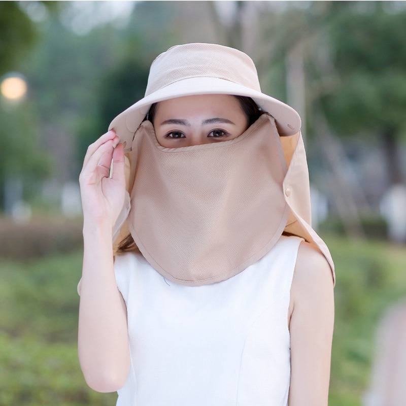 Women's Sun Hat Mask UV Protection Riding Cap Wide Brim Beach Hat Summer