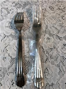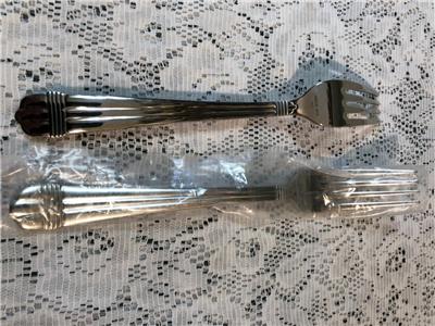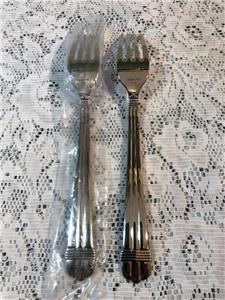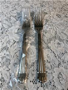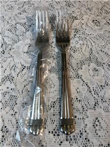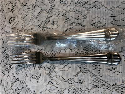 Up for auction are two(2) stainless dinner forks from Oneida in the Geneva ribs and band pattern. Hard to find, approximately 8 1/4" long, marked ONEIDA 18/10 STAINLESS CHINA. New, sleeves, nice and shiny! Tried to reflect in my pictures. From a smoke free home. Thank you for looking and please check my other listings for interesting collectibles.