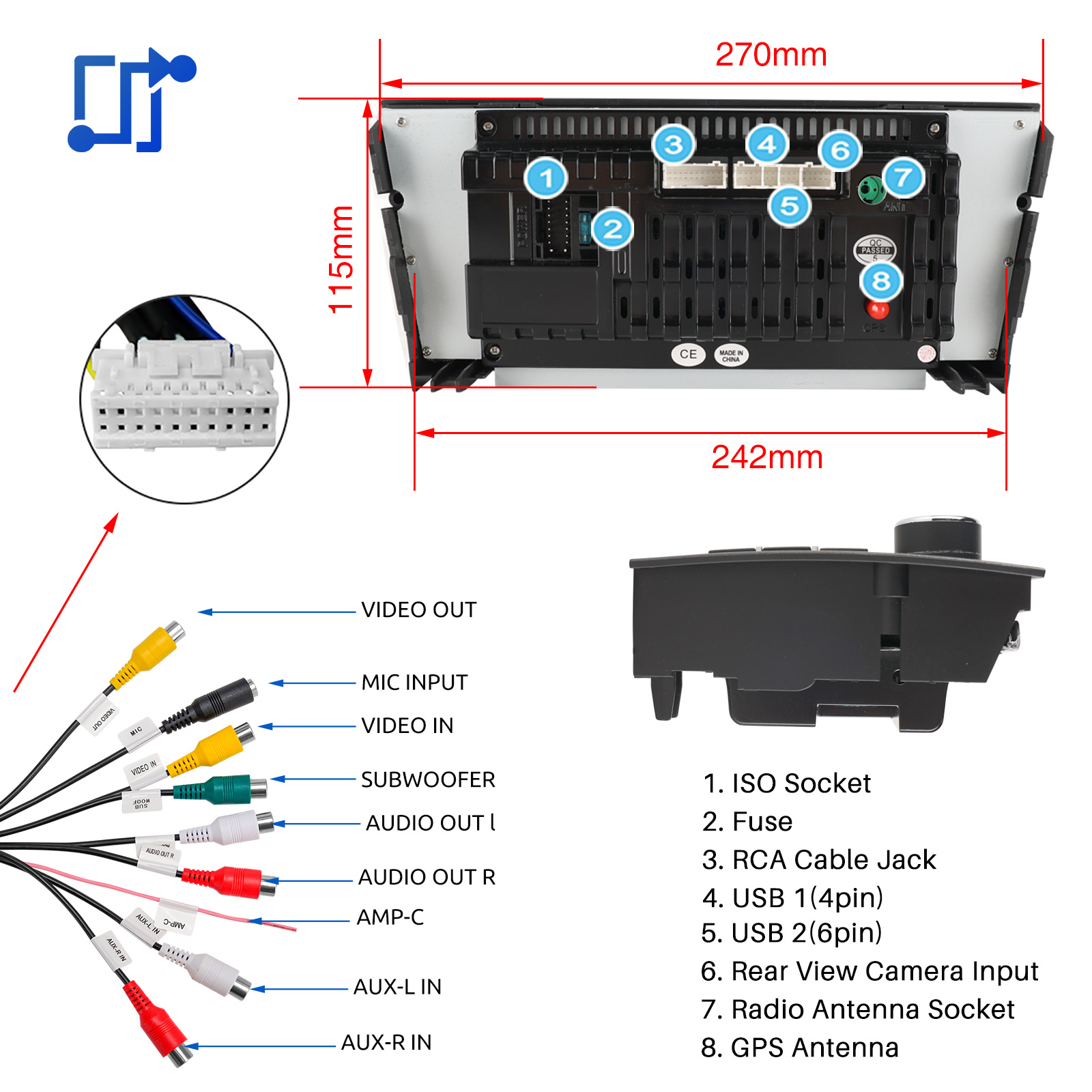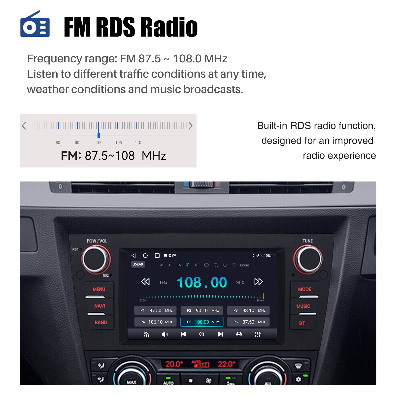 RDS/FM Radio & Bluetooth & ASP Sound: RDS/FM radio and Bluetooth and ASP sound: Supports Bluetooth 4.0, with built-in microphone so you can make hands-free calls while driving. Supports access to phone book, music playback interface, etc. RDS supported. You can save 18 FM radio stations. Built-in ASP sound setting. Supports 16-band EQ adjustment, which can be adjusted to your personal preferences.Which is very similar to your original sound.4 x 45W amplifier, surround sound and subwoofer output.