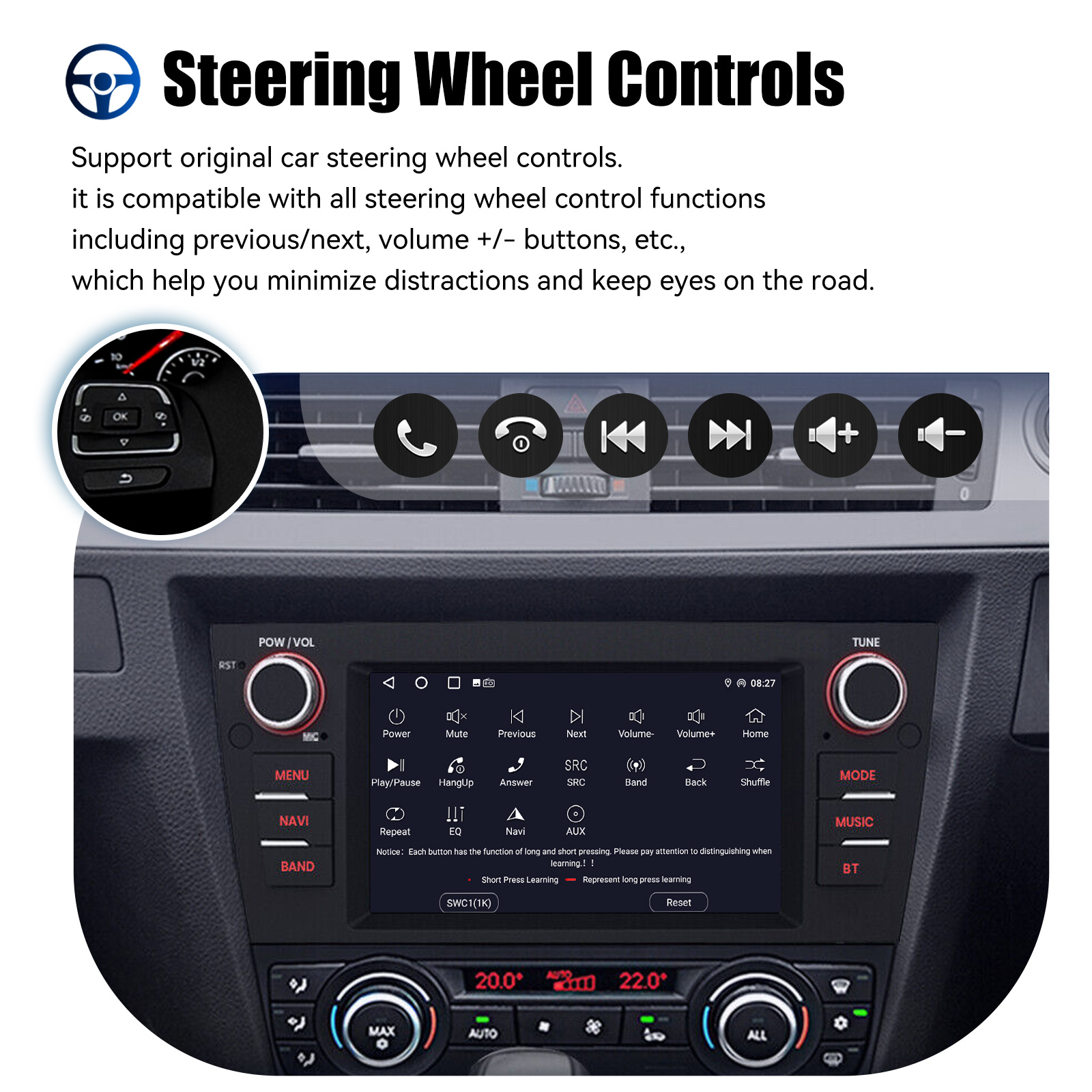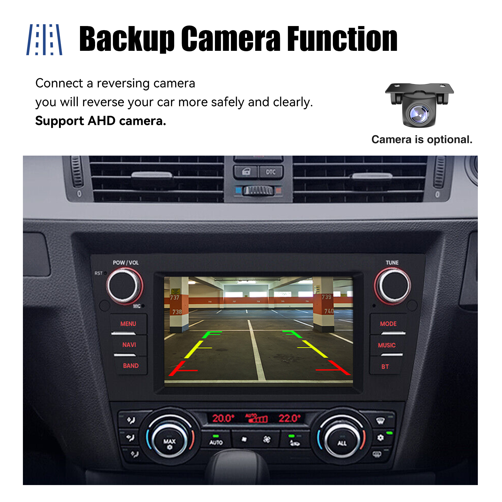 AHD Rear View Camera Input & Steering Wheel Control: After connecting to the rear view camera. The radio automatically displays the reversing image as soon as you engage reverse gear. Make your daily reversing safer. Support AHD camera. Support original car steering wheel control to make driving more convenient and safer.