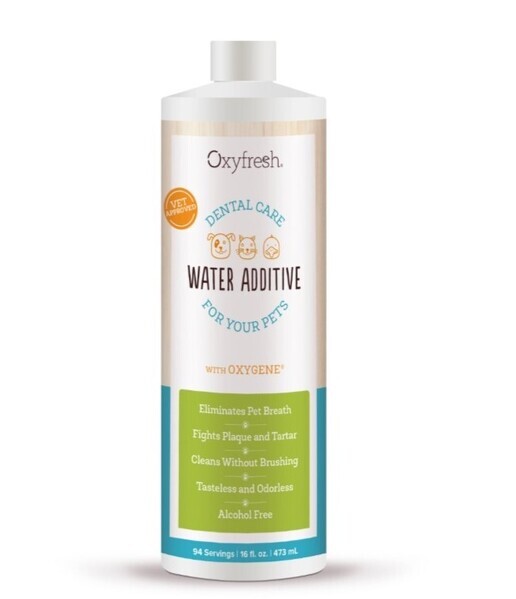 Oxyfresh Premium Pet Dental Care Solution Pet Water Additive The Best Way to Eliminate Bad Dog Breath and Cat Breath - Fights Tartar and Plaque - So Easy, Just Add to Water. Cat and dog dental care is so important to the health and happiness of your furry best friend. Not only is it a must if you want to get rid of that stinky dog breath, it can also add years to your pet’s life. But if toothbrushing seems impossible, good news: pet oral hygiene just got a whole lot easier with Oxyfresh Pet Dental Water Additive. Just add one capful of this non-toxic dog dental solution into your pet’s water bowl or fountain each day, and it will eliminate pet breath while fighting plaque and tartar buildup. There are no flavor additives in this dog breath freshener, so you don’t have to worry