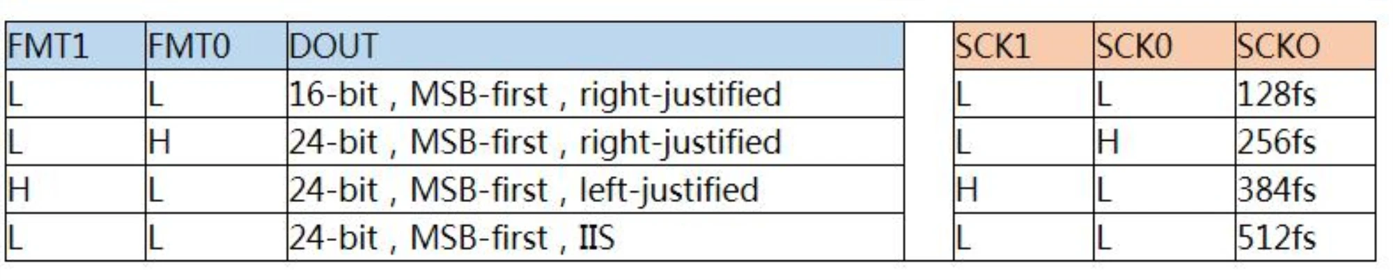 The system clock frequency can be adjusted to 128, 256, 384, 512 fs, (256fs by default)