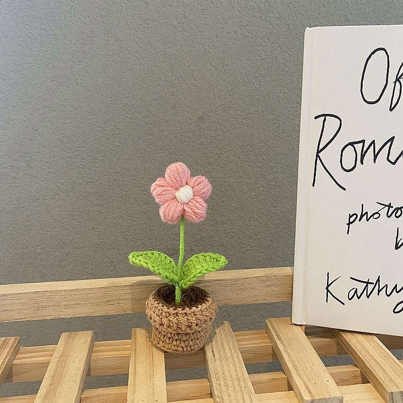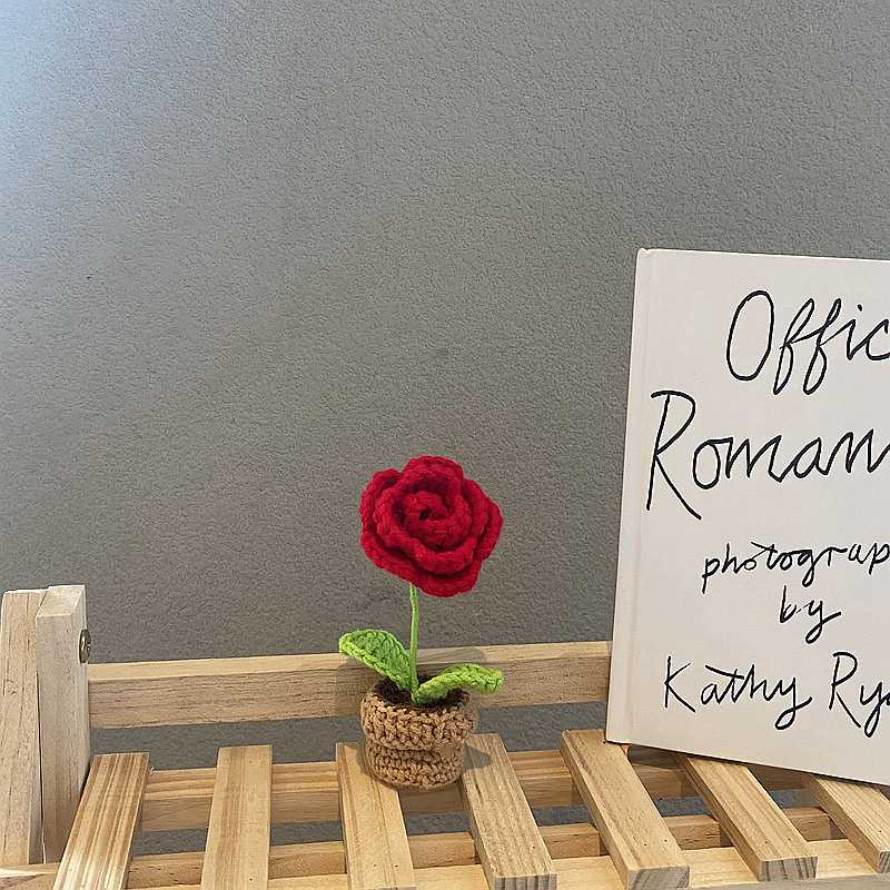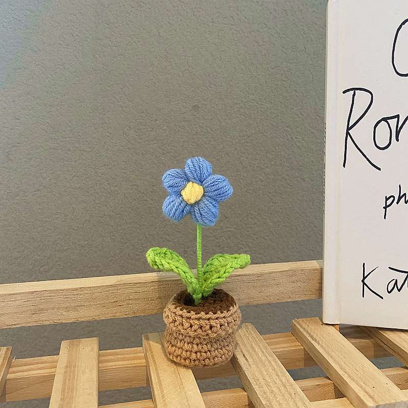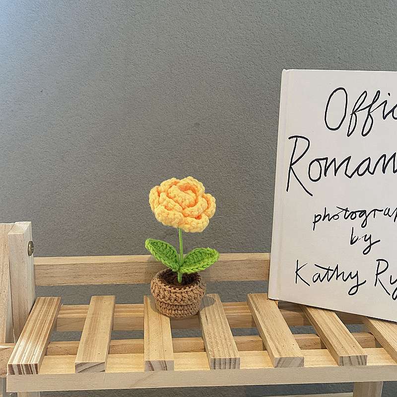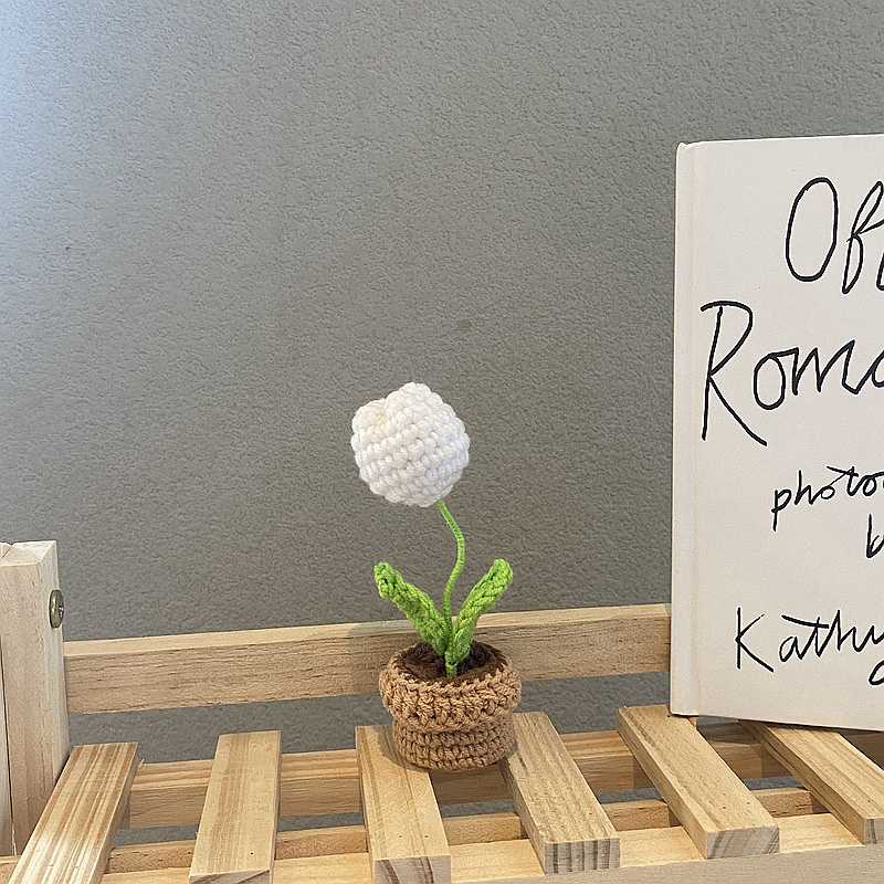 1pcs Hand-woven Decoration Potted Home Rose Tulips Bouquet Knitting Flower