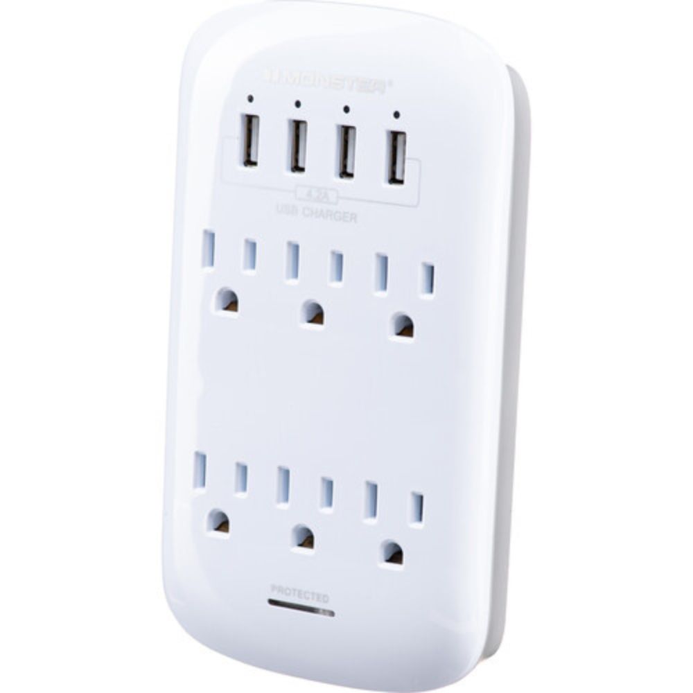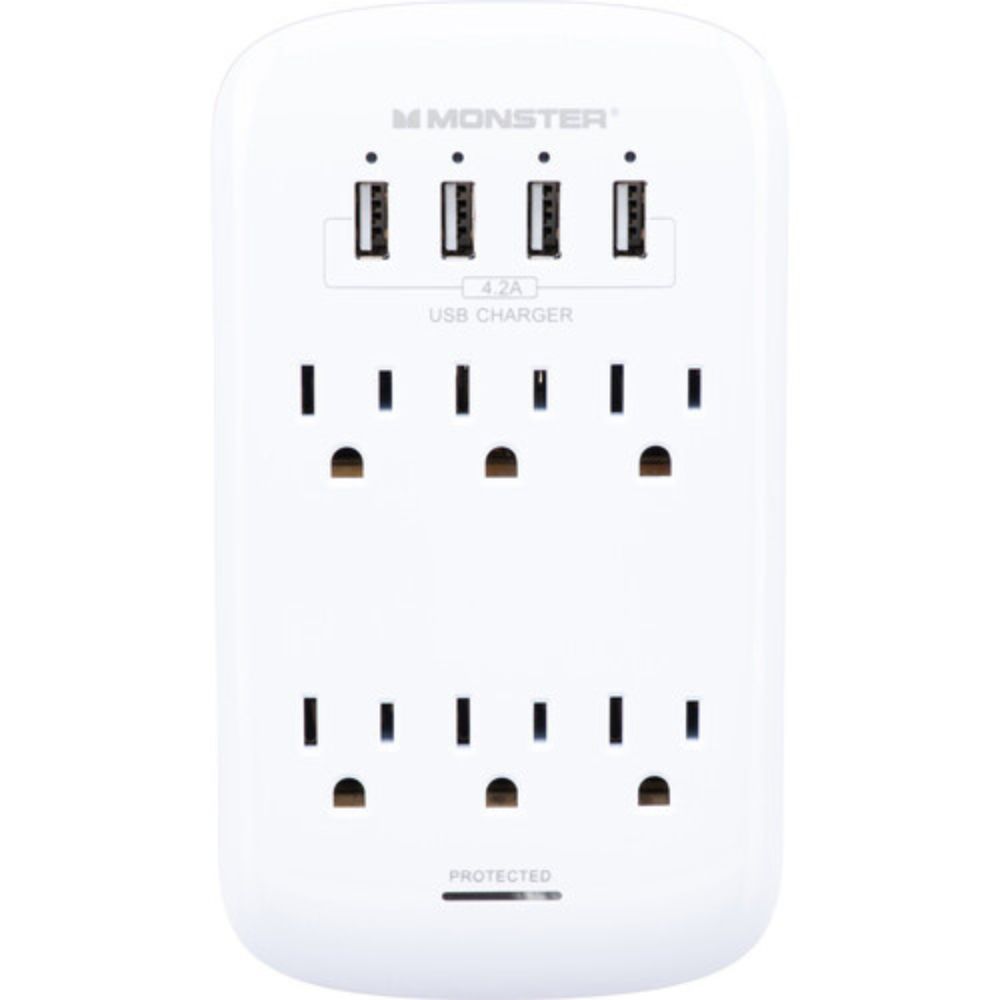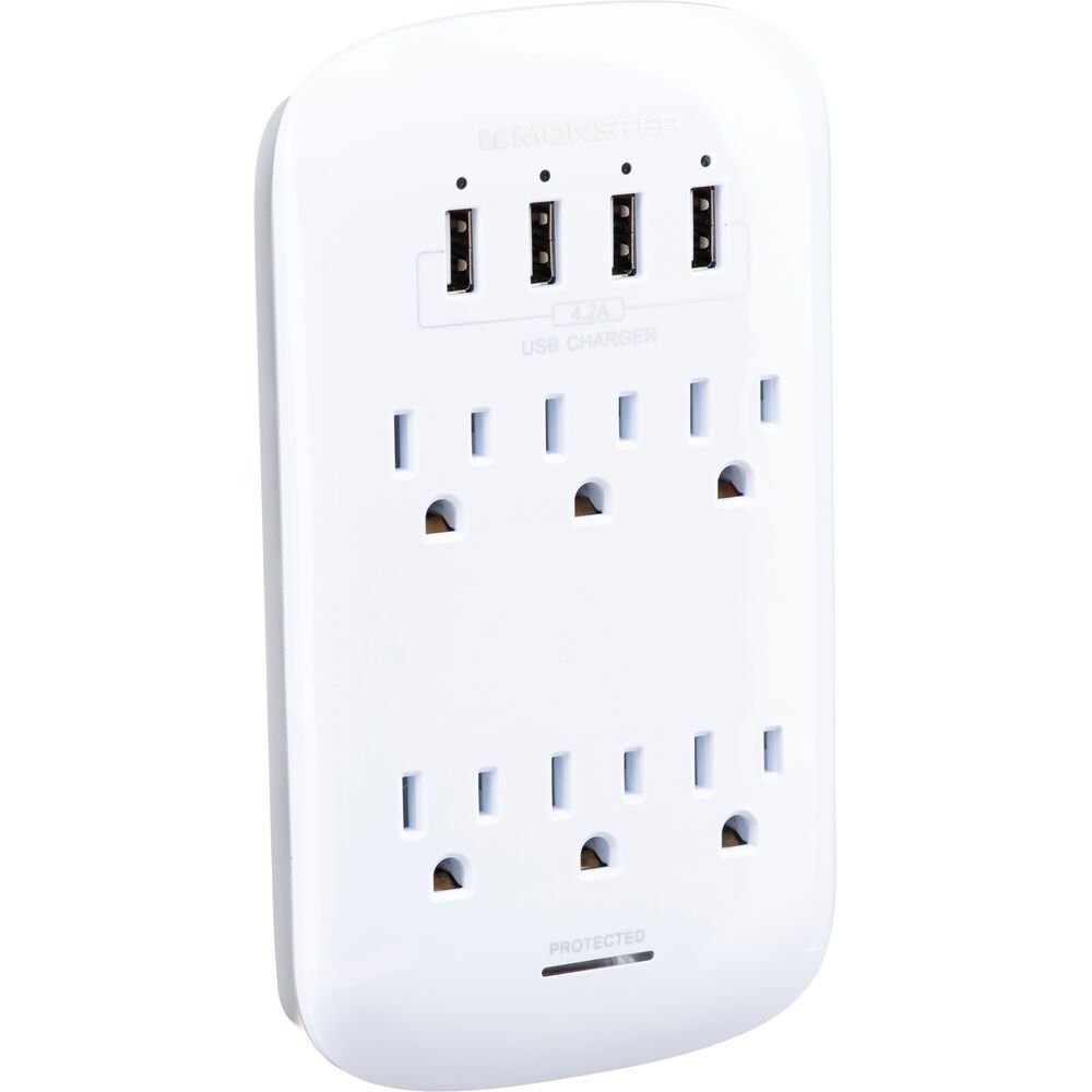 Monster Cable 6-Outlet Wall Tap Surge Protector With 4-USB-A