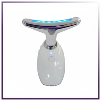 The Lifting LED Therapy Neck & Face Wrinkle-Removing Tool is a revolutionary device designed to help you achieve a more youthful, radiant appearance. With its unique features and powerful vibration massage, this tool can effectively remove a double chin, smile lines, and eye and neck wrinkles while stimulating skin cells to promote metabolism and slow skin cell aging. Apply your favorite moisture-rich lotion, serum, essential oils, or sheet mask onto your face. This tool promotes blood circulation, detoxifies your skin, and rejuvenates your complexion. It has three color modes that help reduce wrinkles, shrink pores, and whiten your skin, leaving it smooth, soft, and supple. The dolphin mouth of our tool can be used to massage and soothe tired eyes, reducing puffiness and dark circles. This device is perfect for people of all ages and skin types. Whether you are dealing with early signs of aging or want to prevent wrinkles, this device can help you achieve your beauty goals. Double Chin Reducer: Say goodbye to a stubborn double chin with the lifting effect of our massager. The massage head is designed to lift from the bottom of the neck, giving you a more defined and contoured jawline. Smooths Wrinkles: Our tool effectively reduces the appearance of smile lines, eye wrinkles, and neck wrinkles by stimulating skin cells, promoting metabolism, and improving blood circulation. Easy to Operate: Apply your favorite skincare products and use the massage head to lift and smooth the skin. It's that easy! Use it for 5 to 10 minutes daily for better results. 3 Color Modes: Our tool comes with 3 different color modes that target various skin concerns: Blue Color Mode: Tightens loose skin and shrinks pores, making it ideal for oily or sensitive skin types. Green Color Mode: Improves oxygenation of skin cells, boosts micro-circulation, and reduces edema and lymphatic build-up. Red Color Mode: Increases cell vitality, accelerates blood circulation, and promotes the growth of fibroblasts and collagen. Specifications: Material: Chrome Alloy, ABS Color: White+silver Power: 2.5W Size: 3.5in x 1.9in x 4.7in Charging voltage: 5v==1A Battery: 3.7v 450mAh USB Charging interface: USB-C Weight: 3.5oz.
