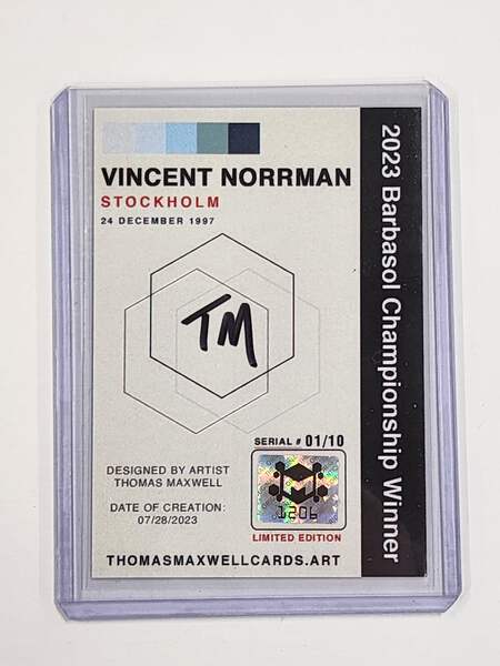 We’re excited to offer this exclusive Vincent Norrman Limited Edition Art Card. This unique Golf Art Card numbered 1/10, showcases Vincent Norrman and is hand-signed by the artist and affixed with a numbered hologram adding an extra layer of authenticity.