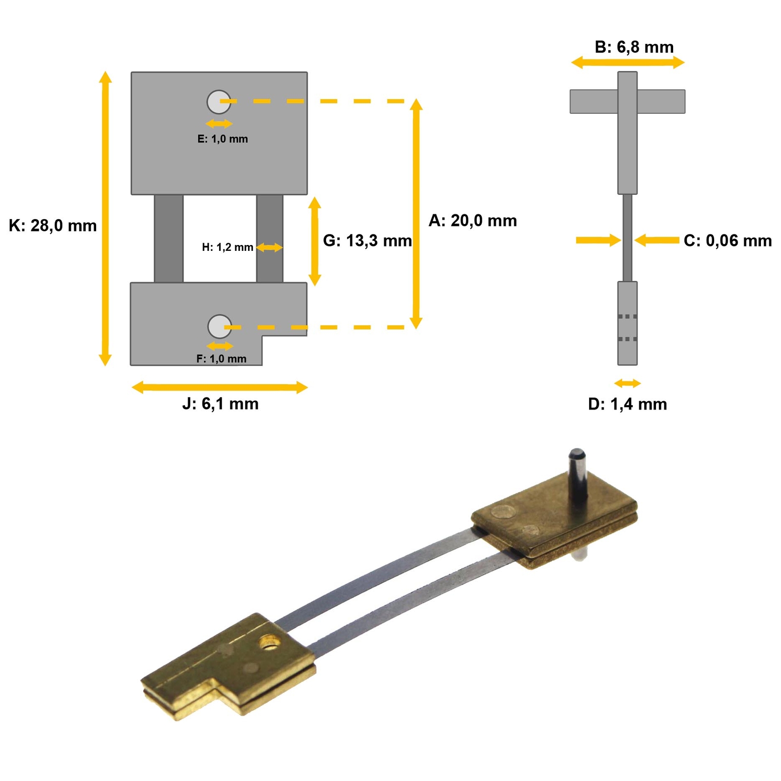 F: Hole or pin diameter bottom