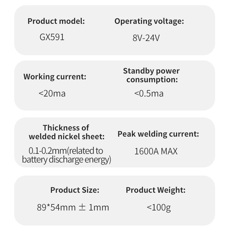 4. High-precise power output design with 99 gears output power is adjustable for more accurate welding, and is suitable for continuous welding of thousands of points on nickel sheet and nickel-plate sheet.
