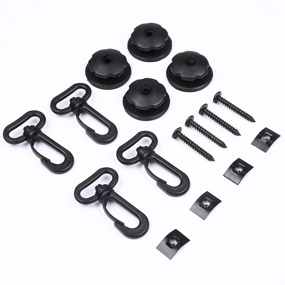 Just put the hooks fix existing attachment points on the cars when cover cargo.