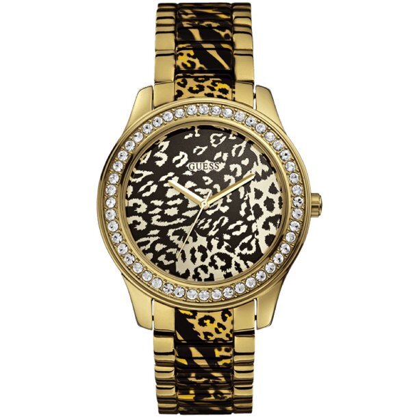 Women's Gold Tone Guess Leopard Print Stainless Steel Crystals Watch U0465L1
