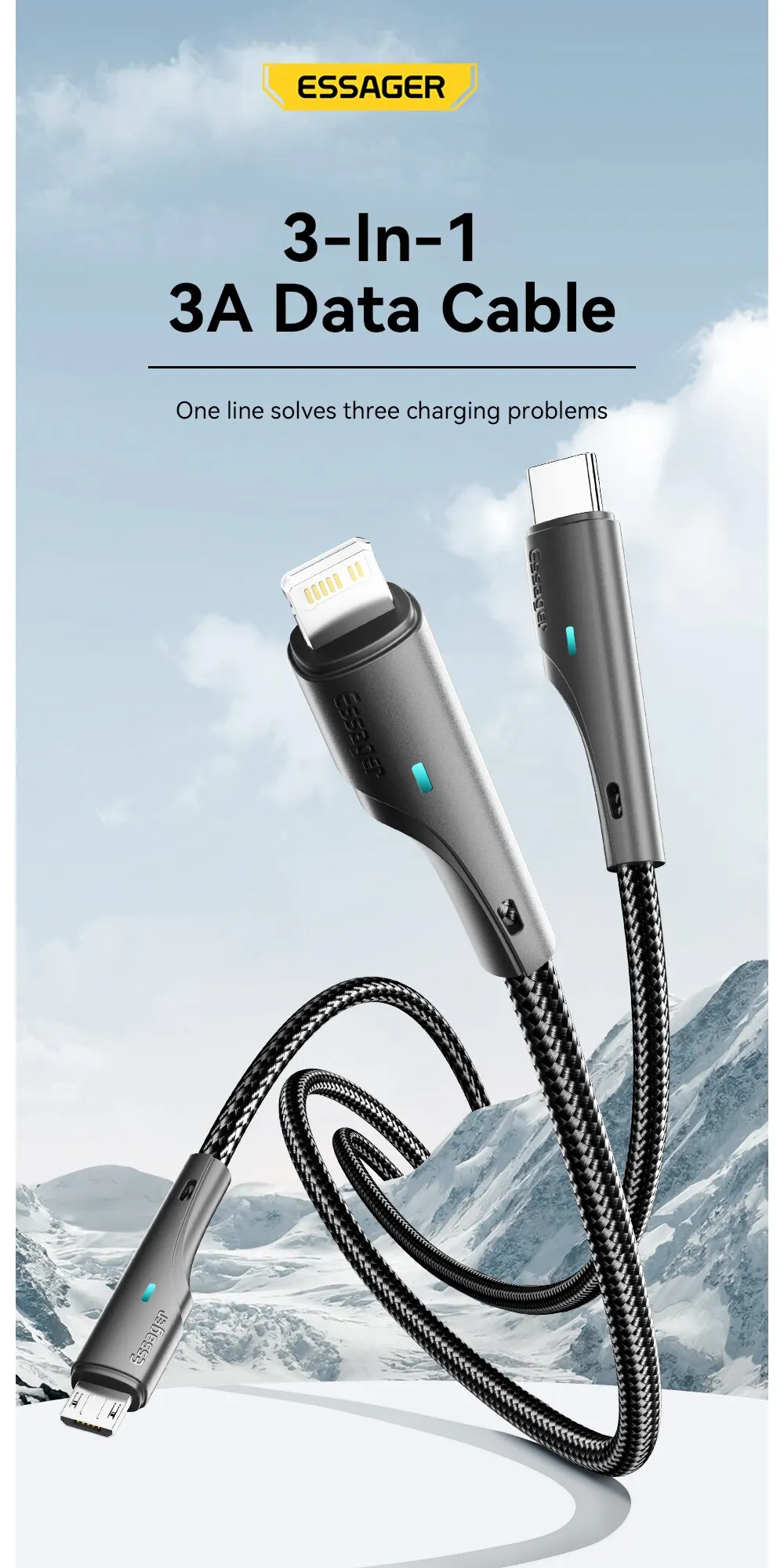 Essager 3A Drei in Eins Schnellladedatenkabel