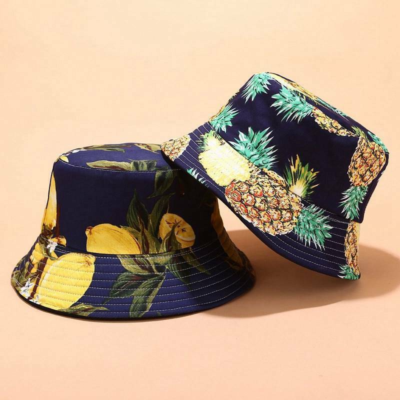 Tropical printed fruit pattern fisherman's Hat Women's summer outdoor sports sunshade hat leisure basin hat
