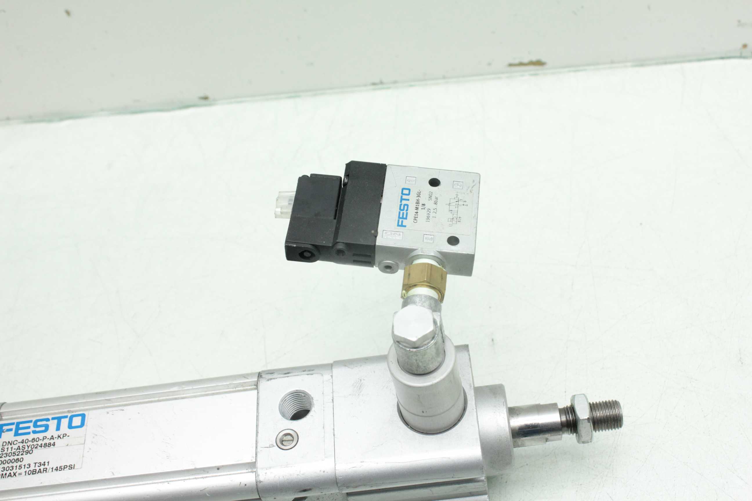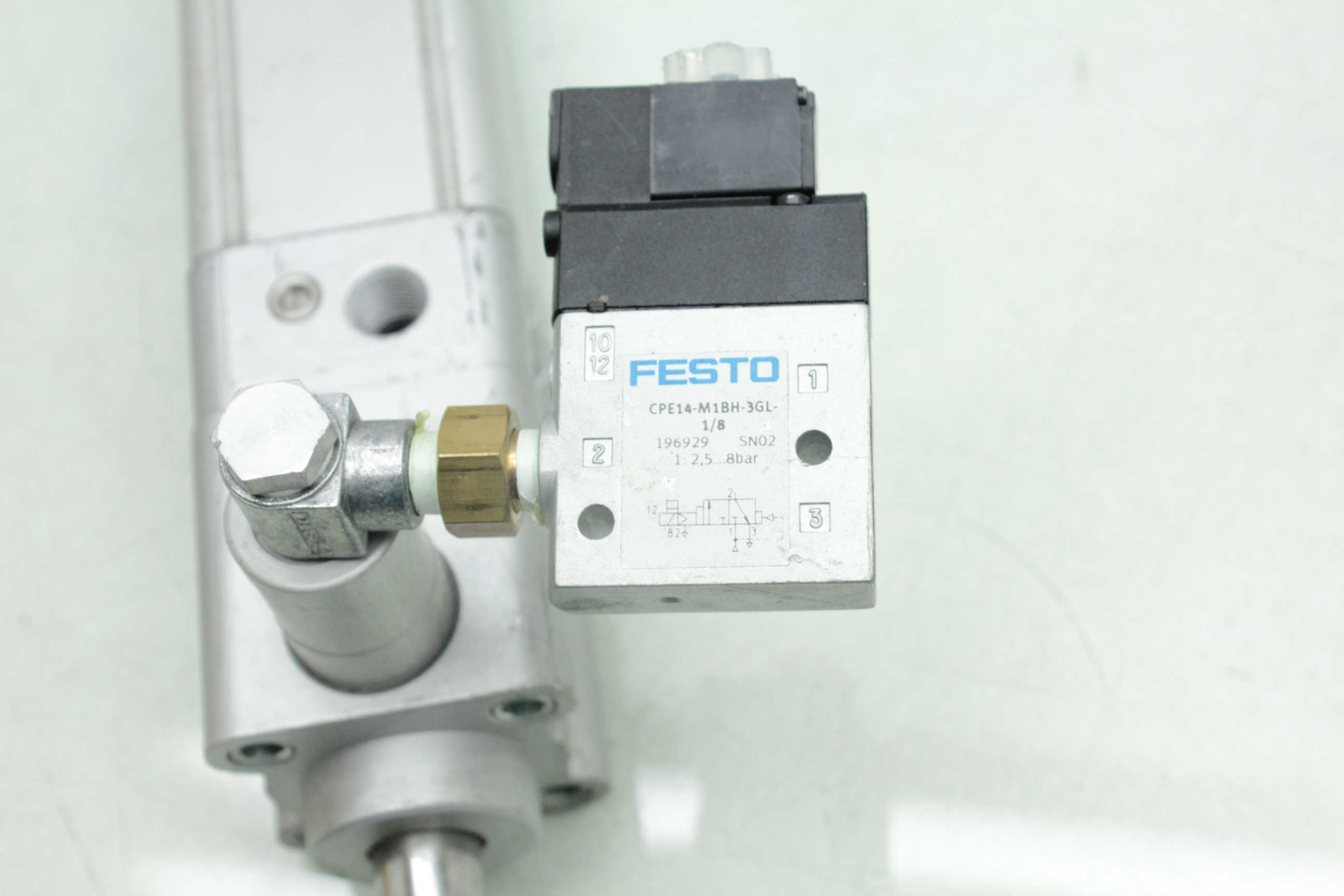 Here is a Festo air cylinder with solenoid valve. This was pulled from late model automation equipment and is in excellent functional and cosmetic condtion. This comes with a 30 day right of return.