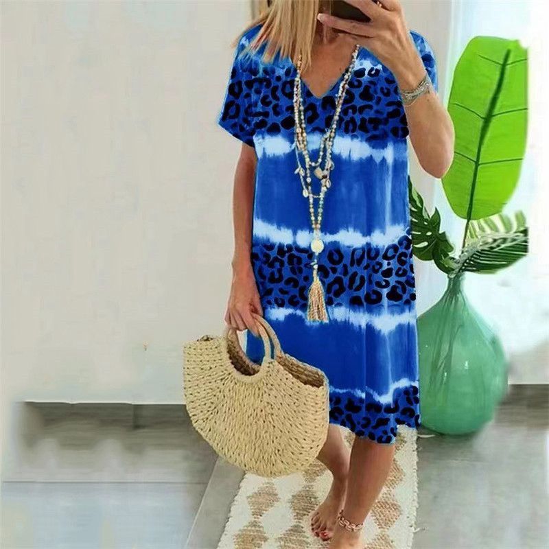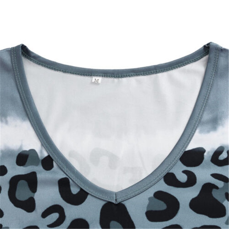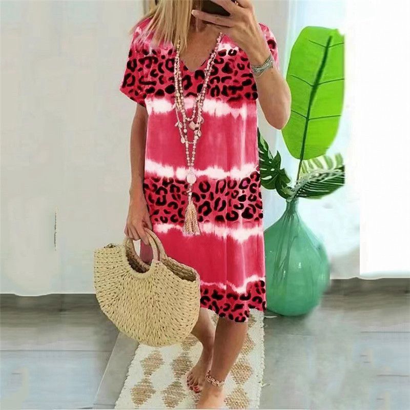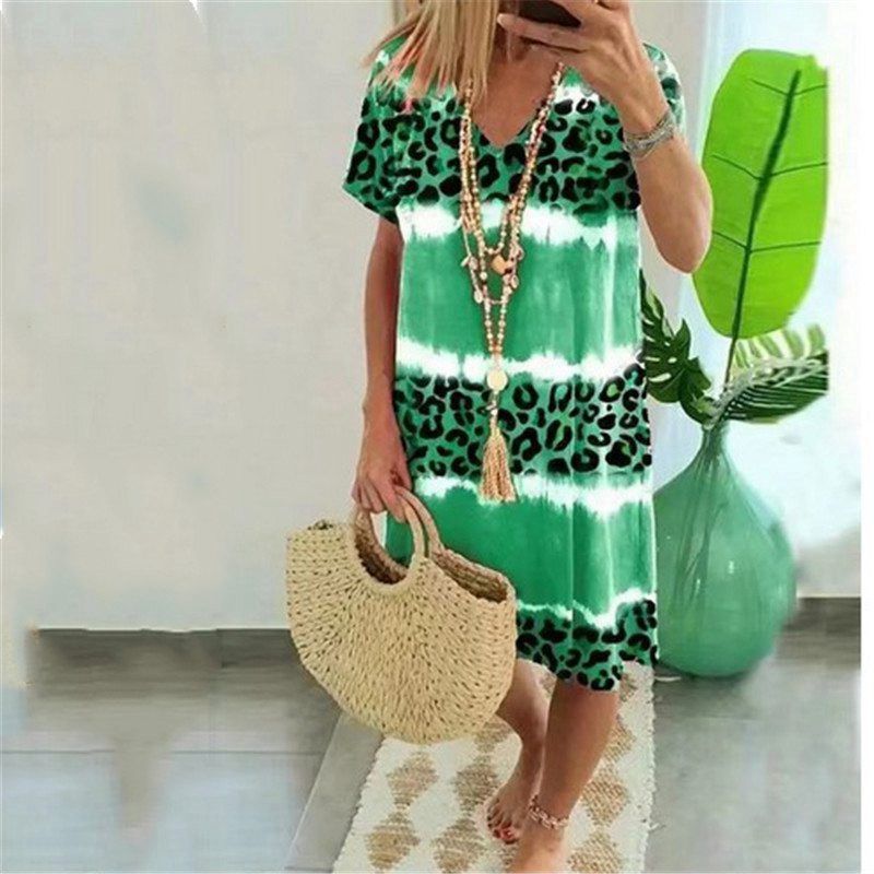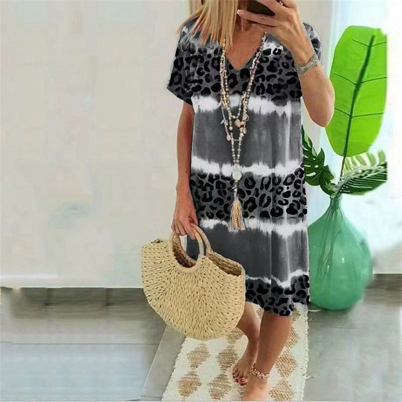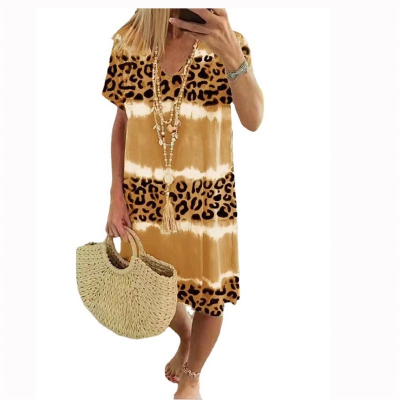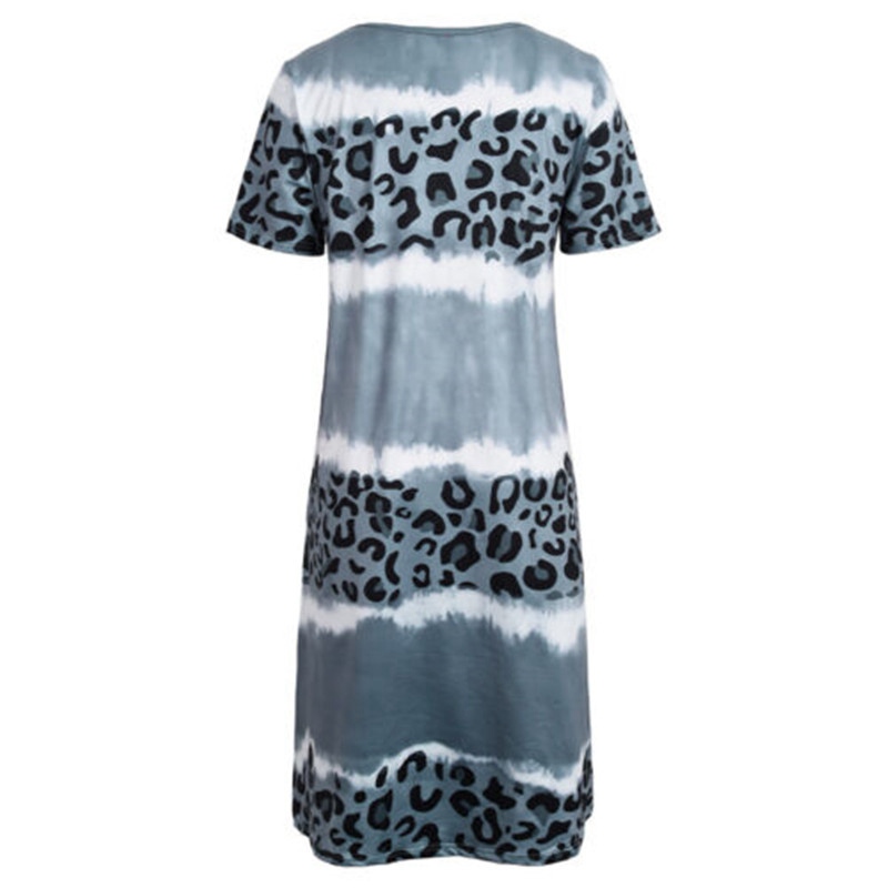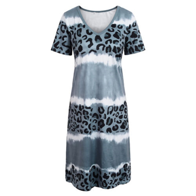 Feature:Sexy V Neck,Short Sleeve,Loose Flowy,Leopard print, Knee Length.