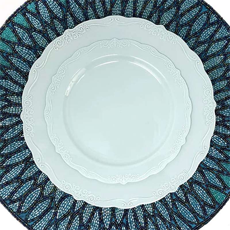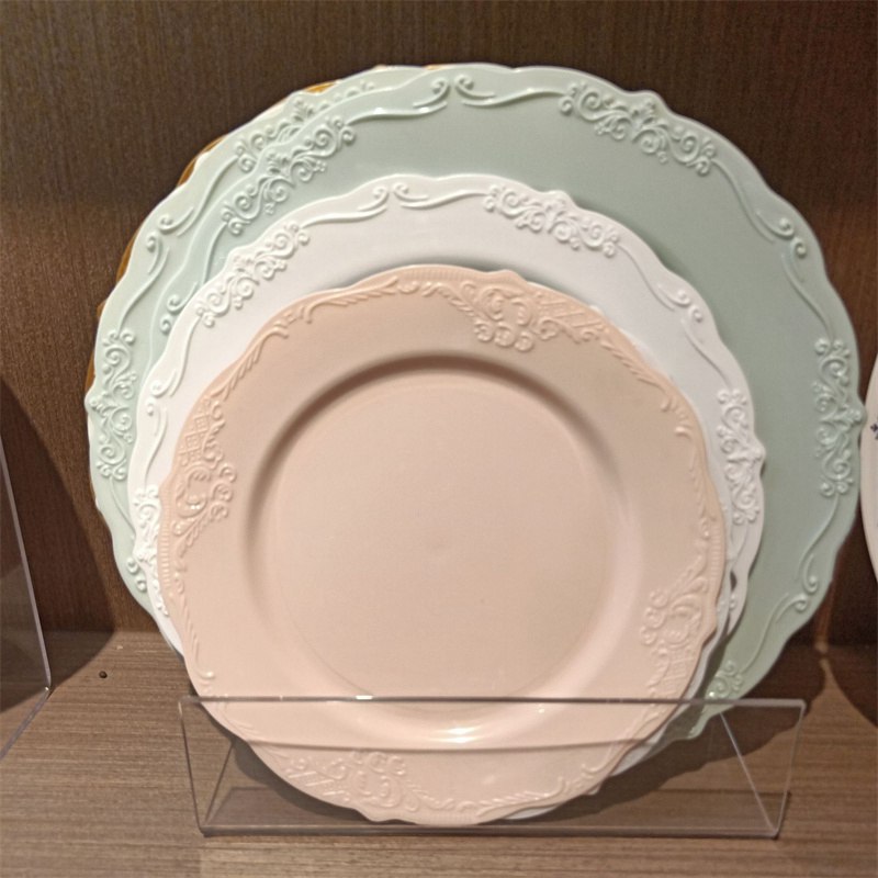 Pink French Lace Disc Steak Plates Disposable Color Hard Plastic Dinner Plates Party Dessert Plates