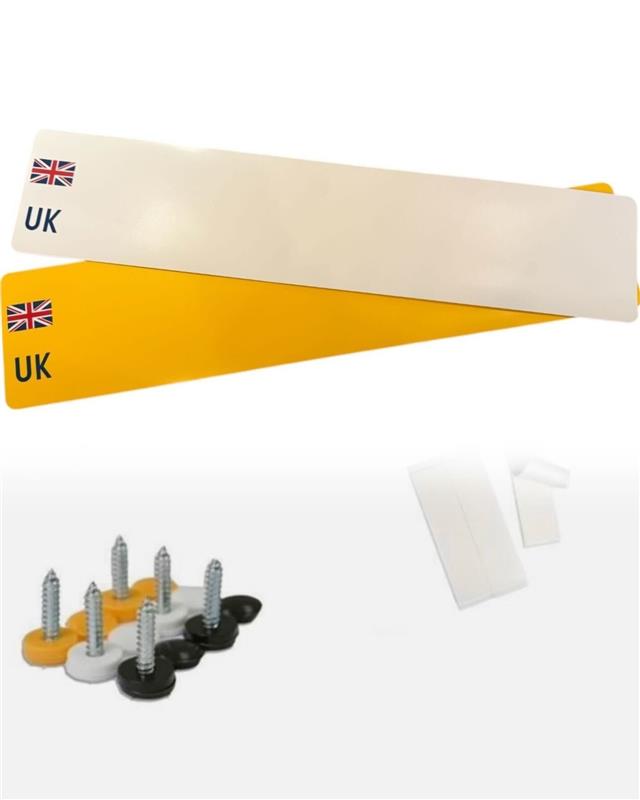 Rear MOT UK Road Legal Car Caravan Van Registration Square Yellow Number Plate