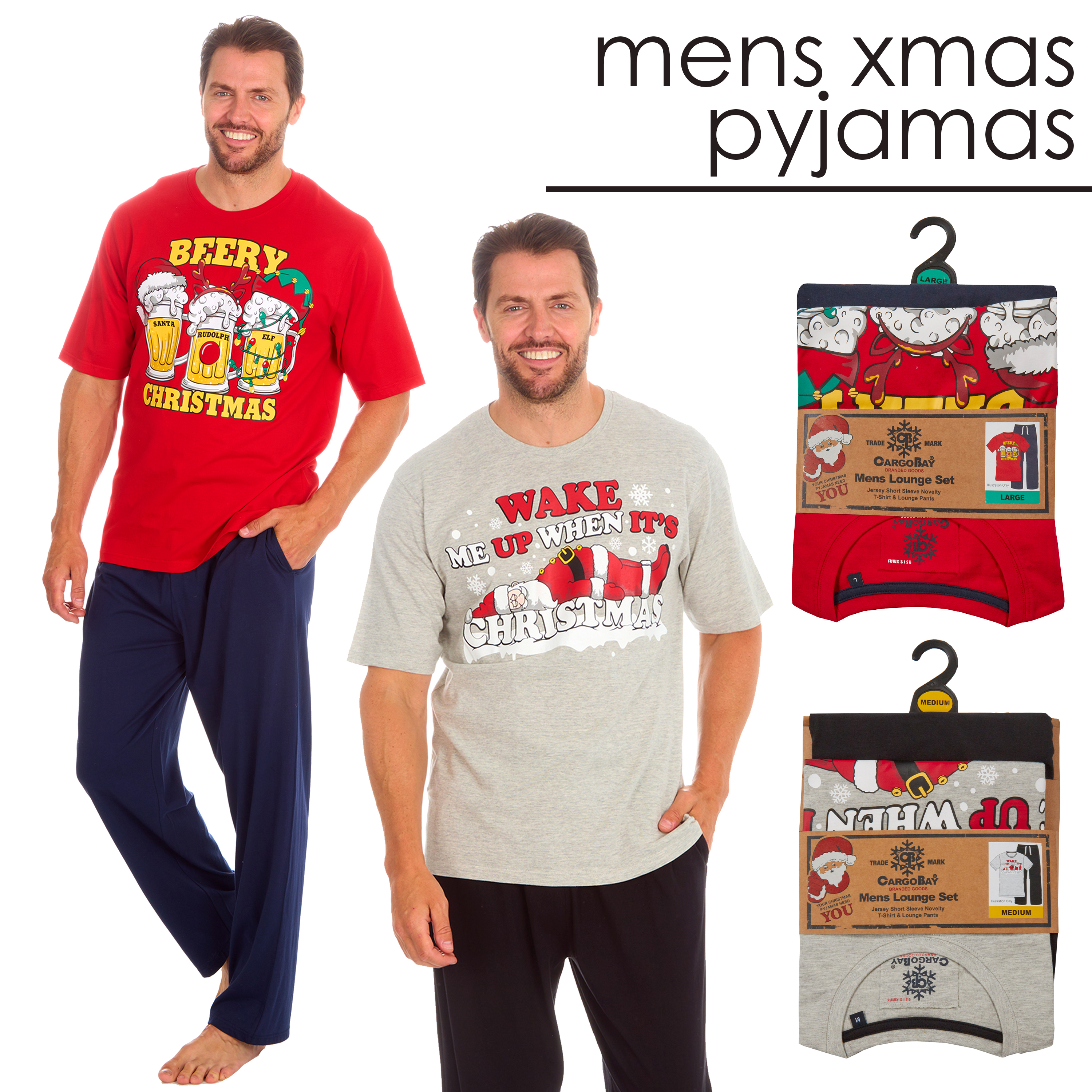 • MENS CHRISTMAS FUNNY PRINTED PYJAMA SETS - Presenting our festive themed 100% cotton jersey mens pyjama sets, available in sizes: Small, Medium, Large and X-Large.