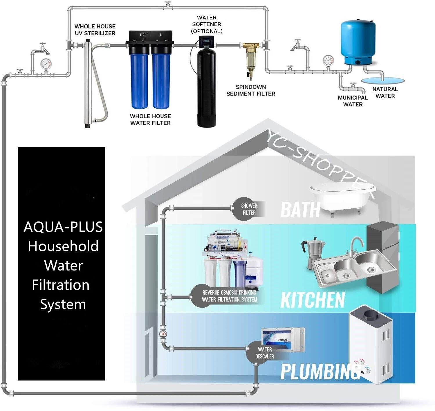 The is designed for "All of House" use on: Dam, Tank, Bore and Town Water, it remove suspended particulate, bacteria, colloidal, and high molecular-weight contaminants from source water.