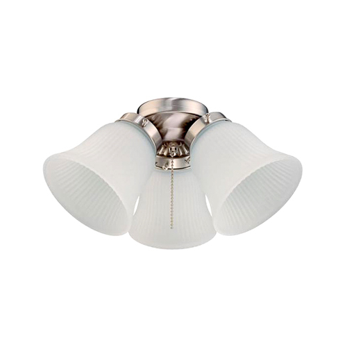 "Brushed Nickel, LED Cluster Ceiling Fan Light Kit, Designed To Work With Standard 42"" To 52"" Ceiling Fans With A Center Hole In The Housing Cap, Frosted Ribbed Glass, Includes 3 Medium E26 Base, 5W Omni A15 LED Lamps, 12.75"" Diameter, 7"" Height."