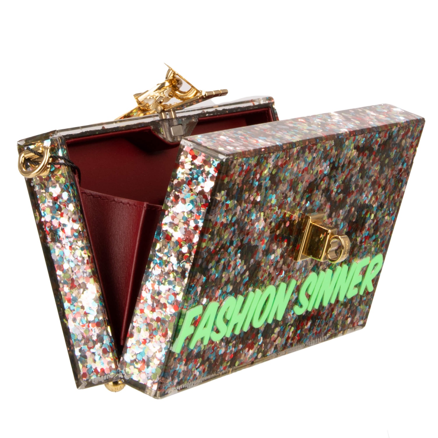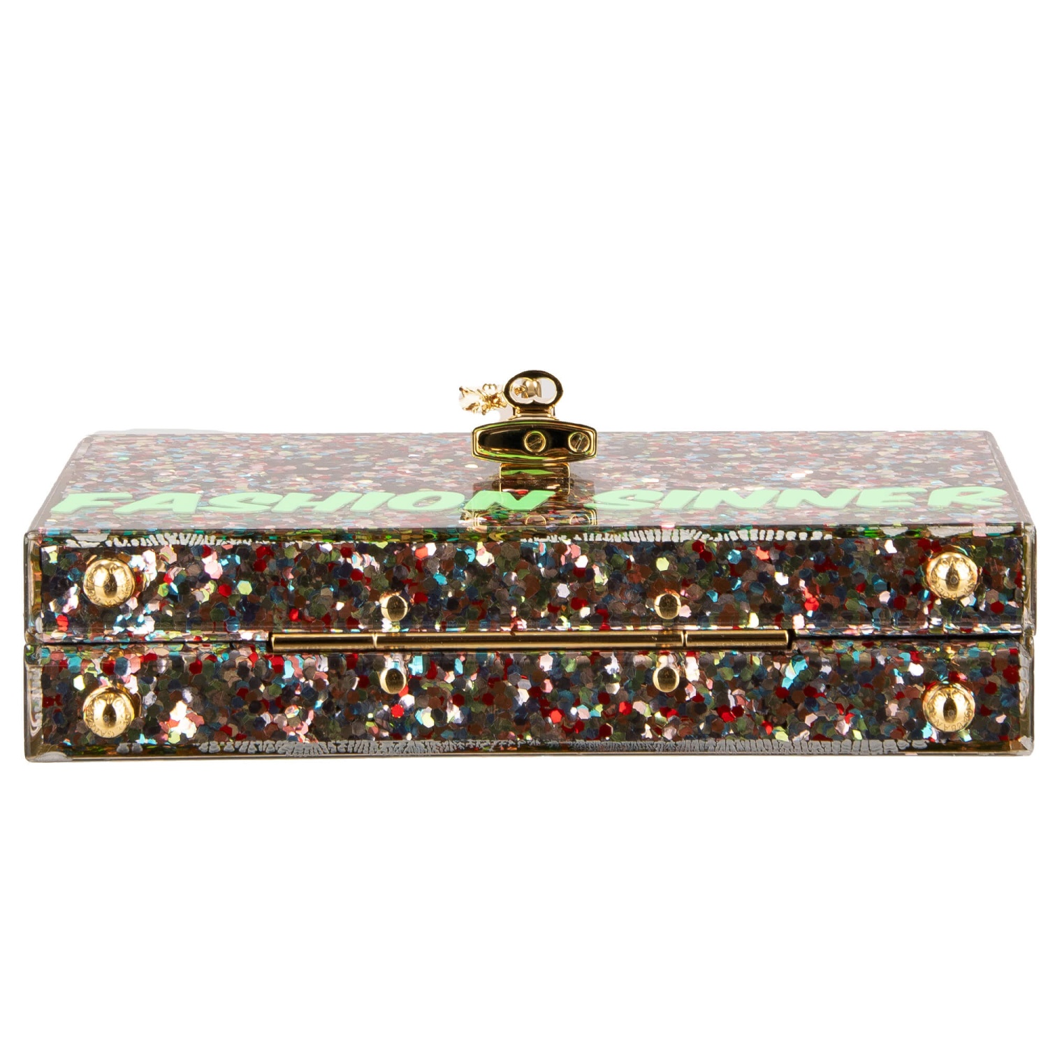 - Sequins embellished plexiglas shoulder bag / clutch DOLCE BOX with Fashion Sinner lettering and decorative padlock with flower by DOLCE & GABBANA