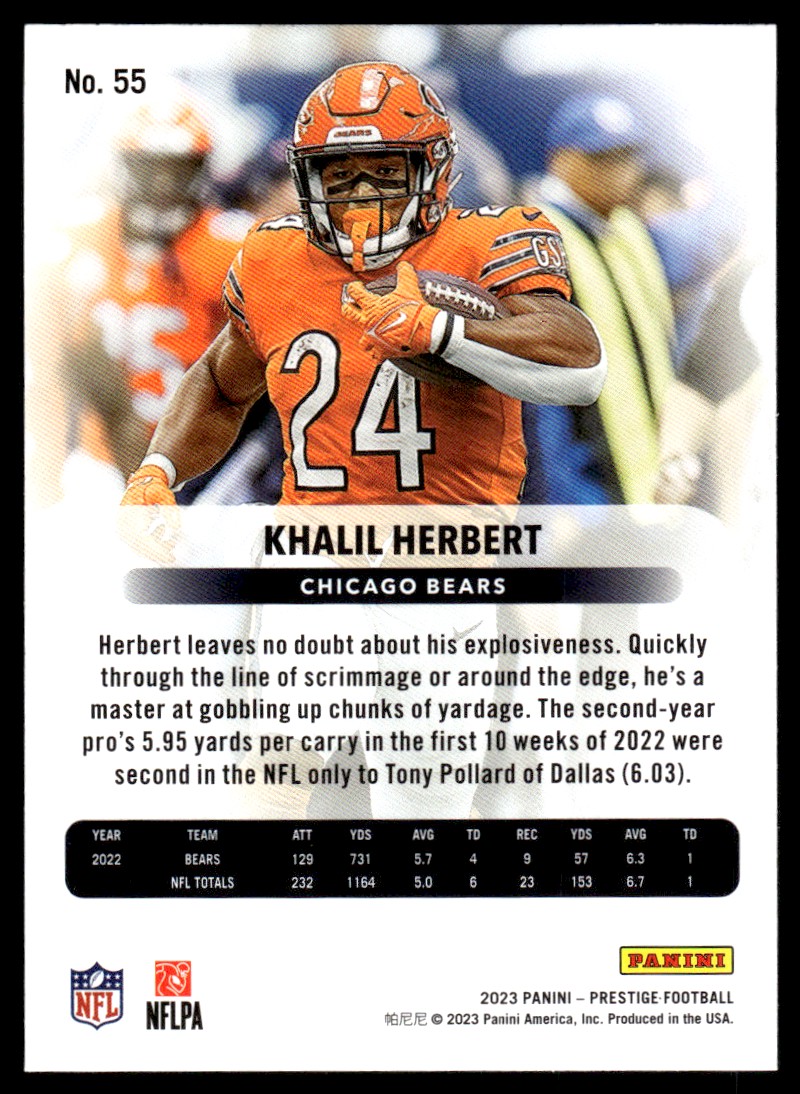 | Khalil Herbert Xtra Points 2023 Panini Prestige #55 Chicago Bears |