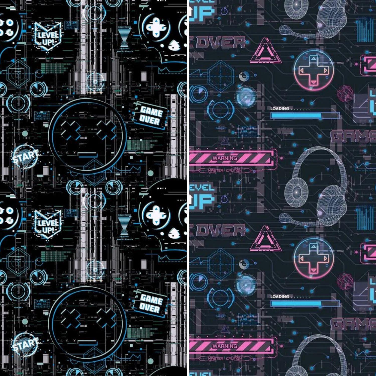 Transform your child’s room with this awesome gamer wallpaper. It features a cool gaming glitch print in a blue or pink colourway, set on a smooth paper background for a truly contemporary wallcovering.
