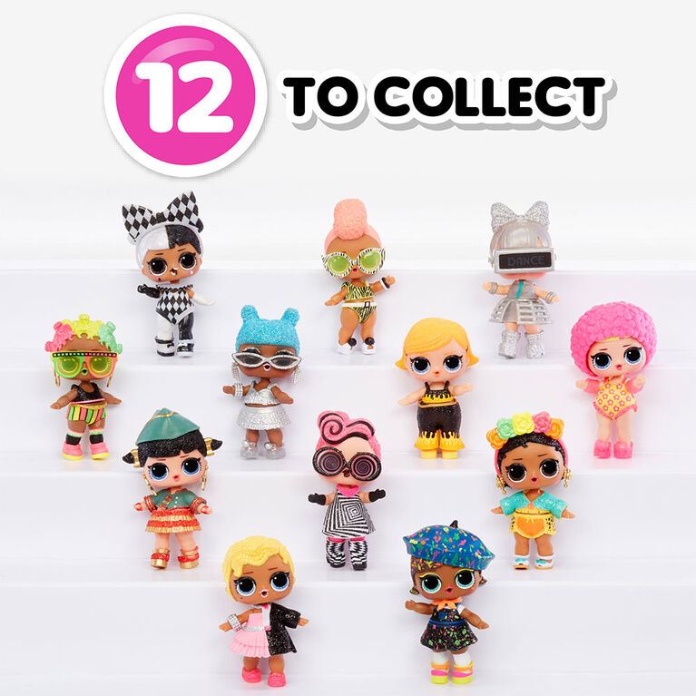 Collect all 12 L.O.L. Surprise! Lights Glitter dolls, each with 8 surprises: Secret Message, Bottle, Black Light, 2 Fashion Accessories, Outfit, Shoes, and the pictured L.O.L. Surprise! Lights Glitter doll