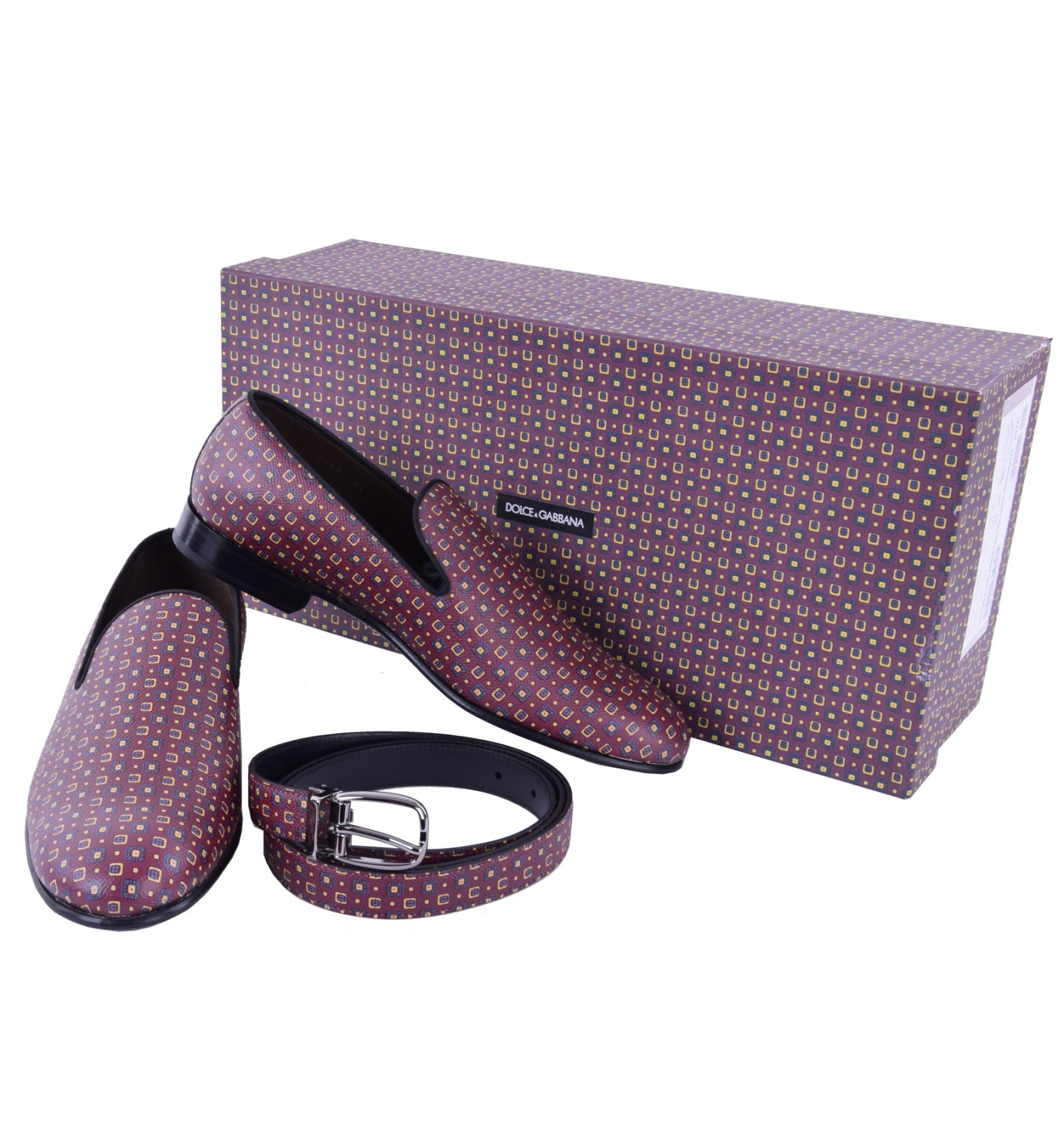 - Dauphine leather loafer shoes MILANO and belt Gift Set with neckwear pattern by DOLCE & GABBANA