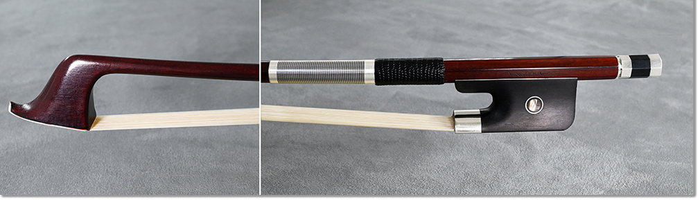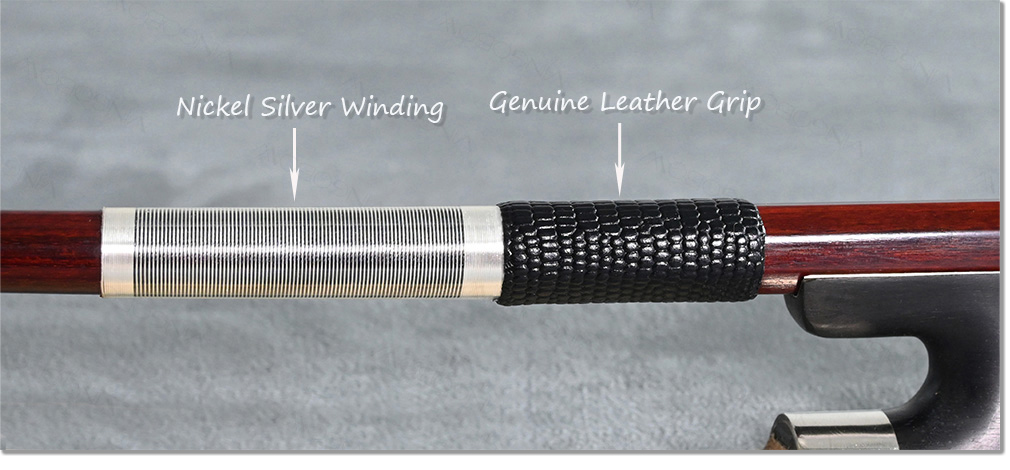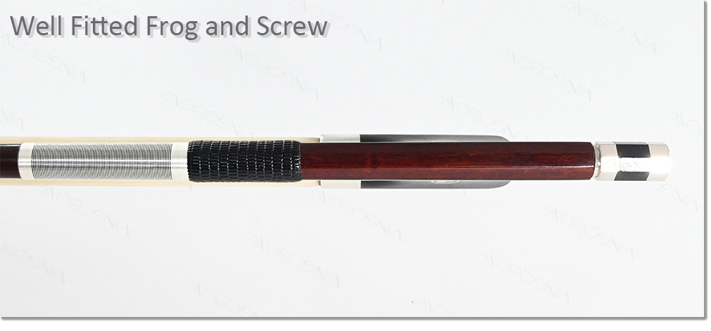 The bow has IPEstick, air dried more than eight years. Round stick shape, great wooden bow hand feeling. Adopting unbleached Mongolia horsehair, it will offer you sweet sound. Black ebony frog shows natural wood grain, and is decorated with classical parisian eyes.Genuine leather grip, elegant nickel silver thread winding.All parts are fitted by a same experienced maker from the start to finish. It's a good bow for student.