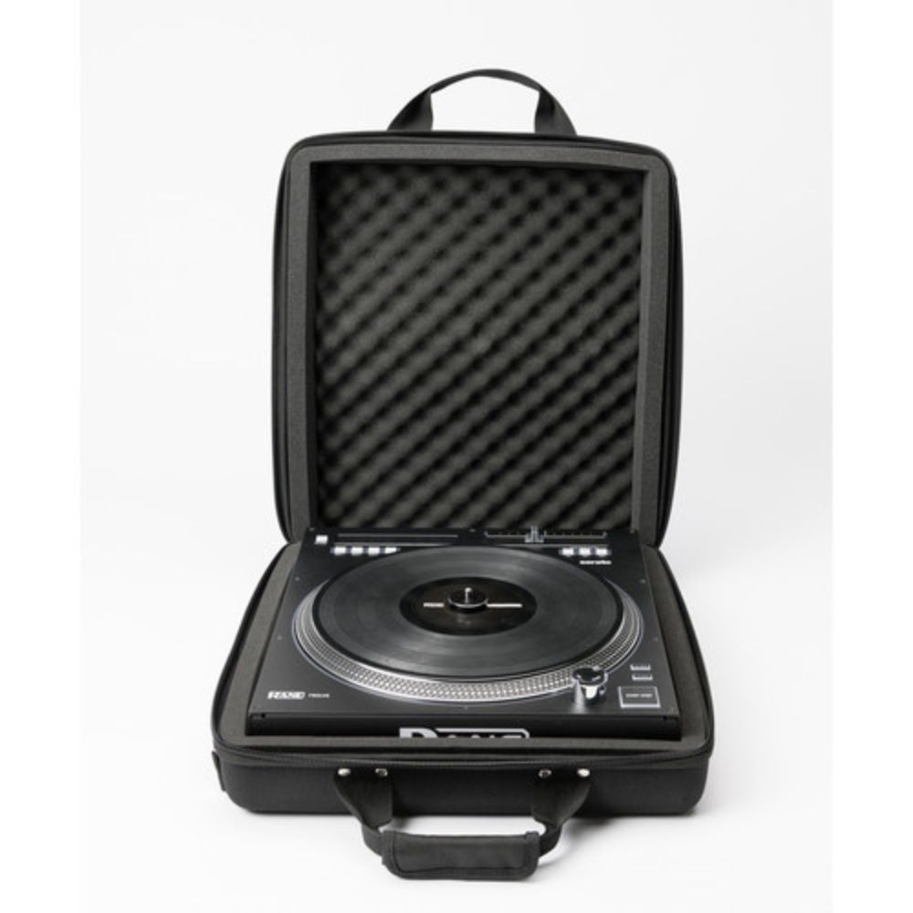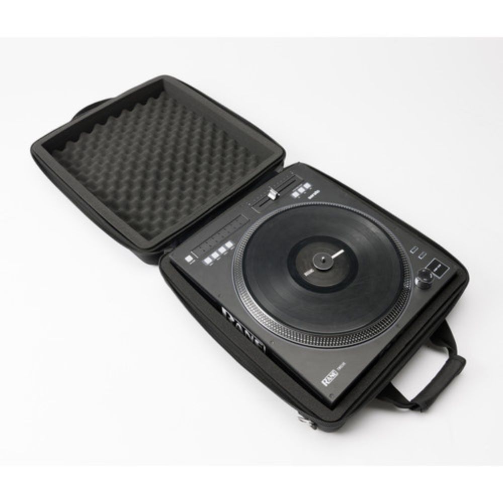The case is fashioned out of Durashock-molded EVA, with a water-rejecting polyester exterior shell. It closes by means of a sturdy zipper. Inside the case you'll find removable egg-foam style padding on the sides and bottom to protect the controller's knobs and platter.