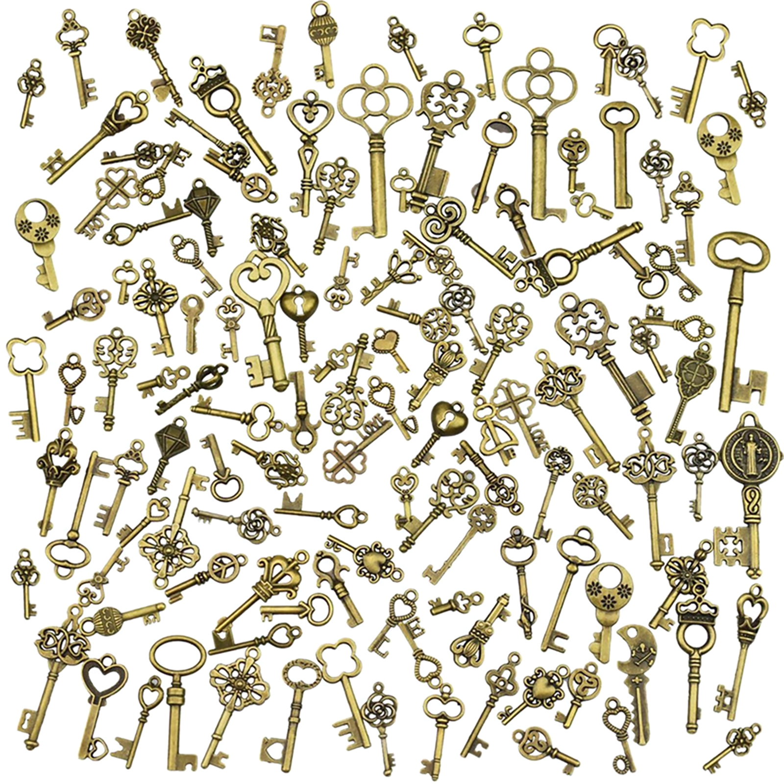125PCS Vintage Style Antique Skeleton Furniture Cabinet Old Lock Keys Jewelry