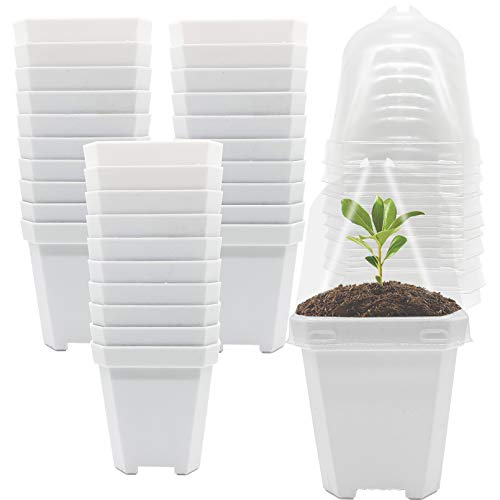 30 PCS Plant Nursery Pots with Humidity Dome-Gardening Pots Small-Square Planting Containers Cups for Succulents Seedlings Cuttings Transplanting (30 PCS-S)