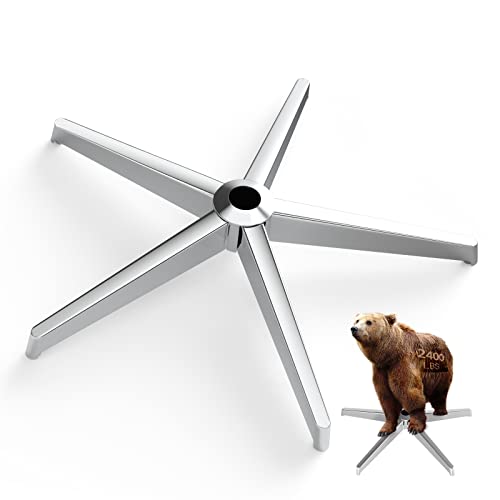 Office Chair Base Heavy Duty, Metal Desk Chair Base Parts with Universal Gas Cylinder Hole and Casters Sockets, 2400+Lbs, Diameter 28", Silver