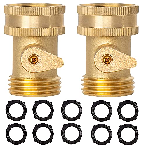 Brass Garden Hose Shut Off Valve, 2 Pack Heavy Duty 3/4 Inch Solid Brass Garden Hose Shut Off Valve with 10 Extra Rubber Washers