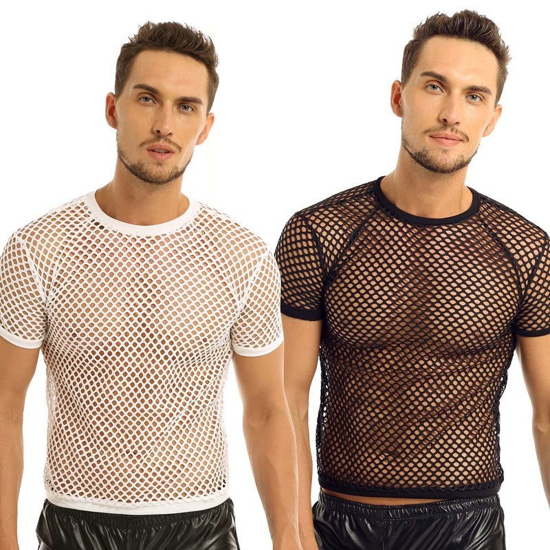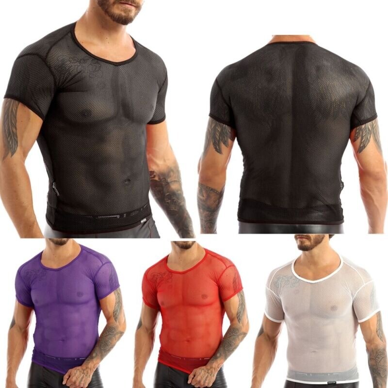 US Men's Sheer Fishnet Mesh See Through Short Sleeve T-Shirt Tank Top Undershirt