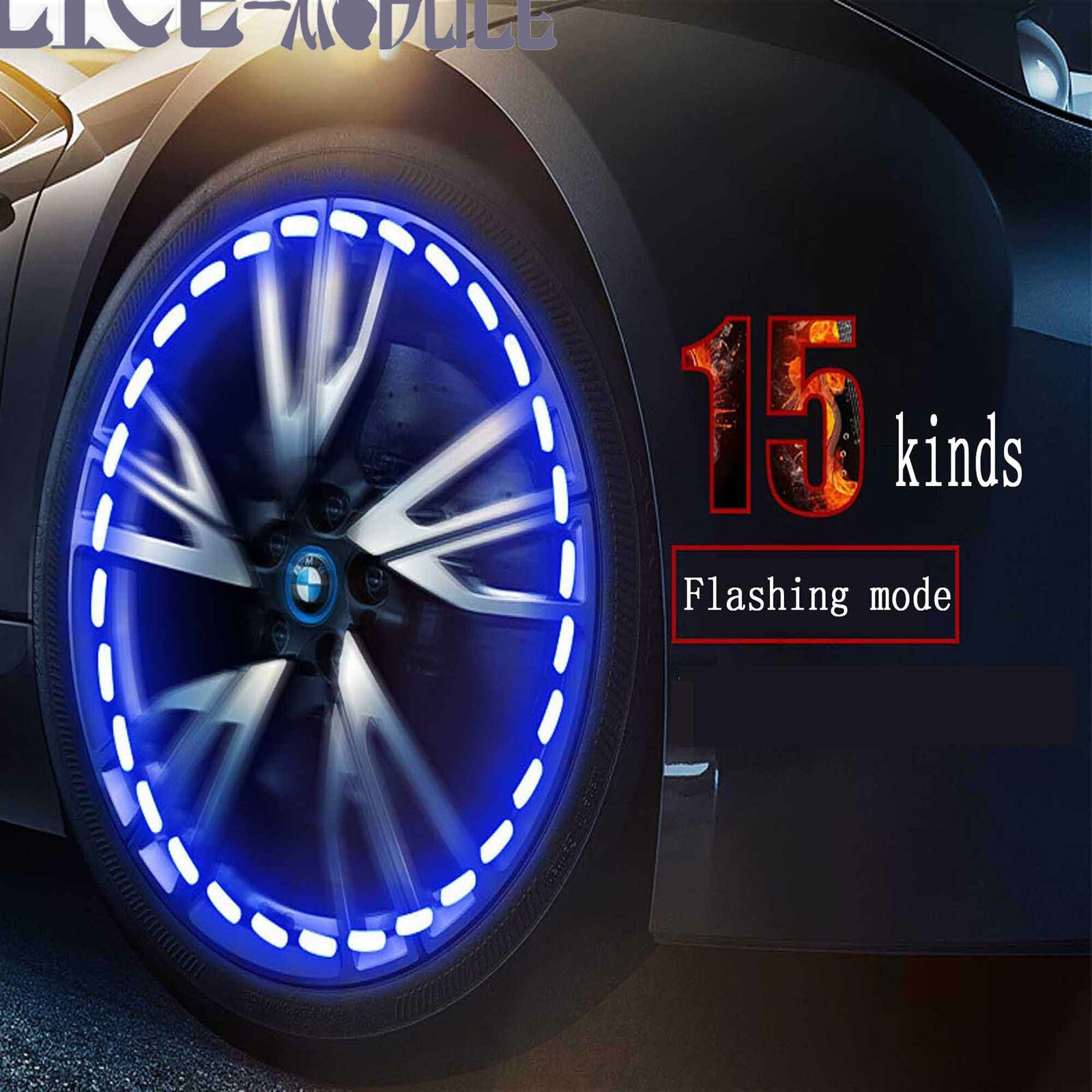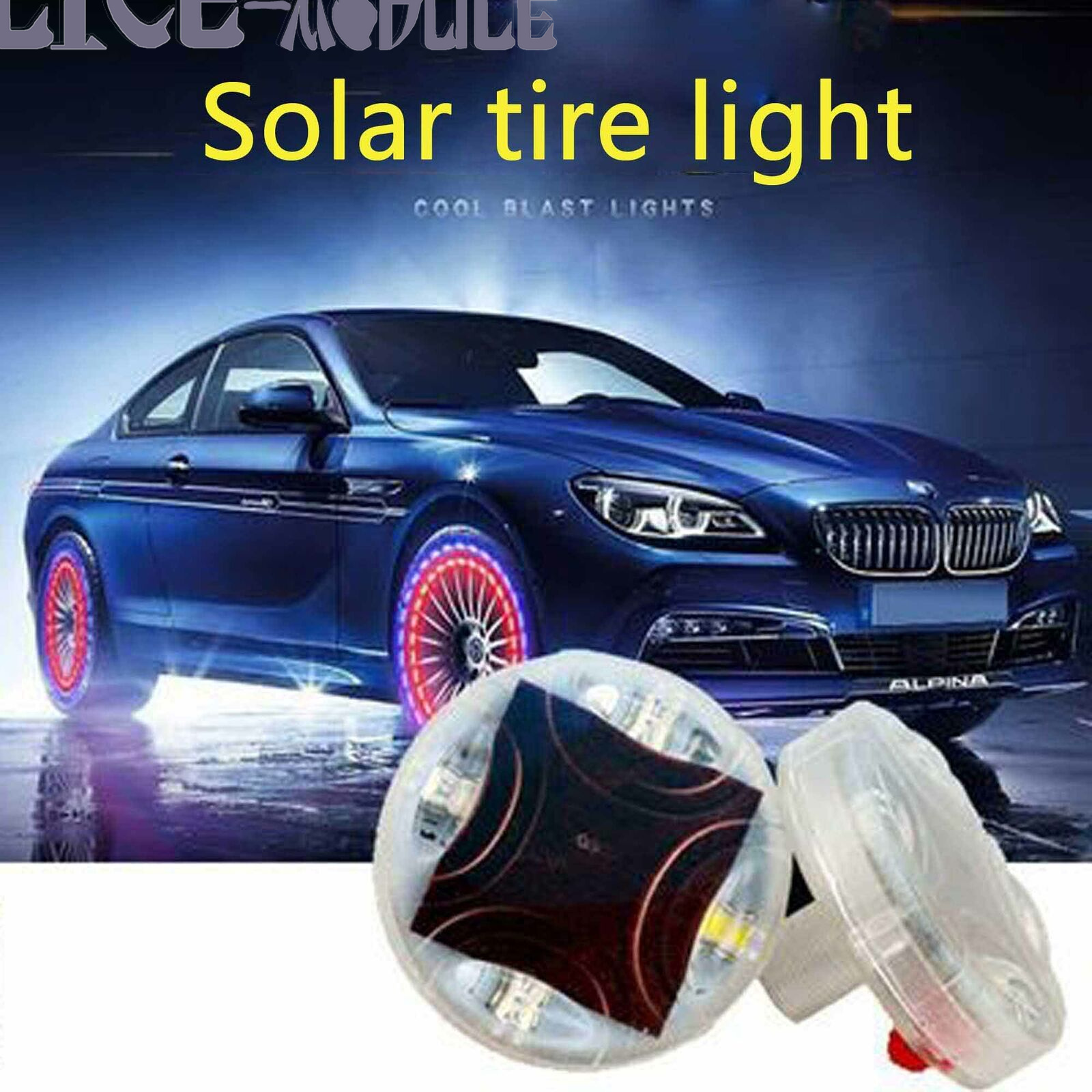 Solar LED lights are assembled on the wheel air caps