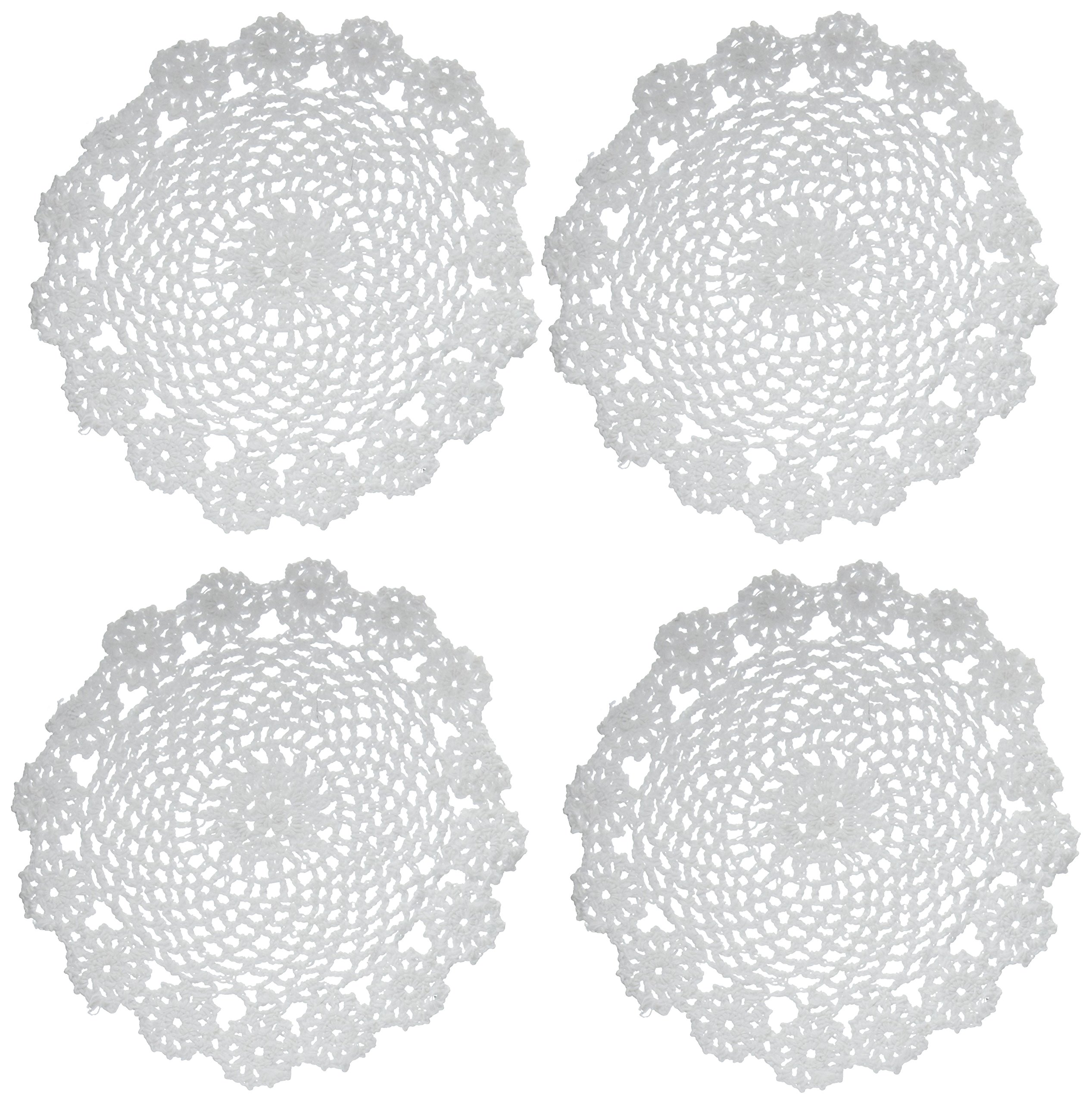With this handmade knitted garland lace design, Crochet Cotton Lace Table Placemats Doilies reveal and enhance the elegant beauty of a table, providing sweet and classic visual interest. Round shape in medium size (7 inch) is suitable and harmonious with dishes or other tabletop items. Made of cotton, the placemat is designed for optimal functionality with outstanding features of reusable and easy-to-clean. Includes 4 identical pieces. Dimensions may vary slightly within 5% due to its nature of hand crochet process. is a trademark exclusively licensed and distributed by Group. All rights reserved.
