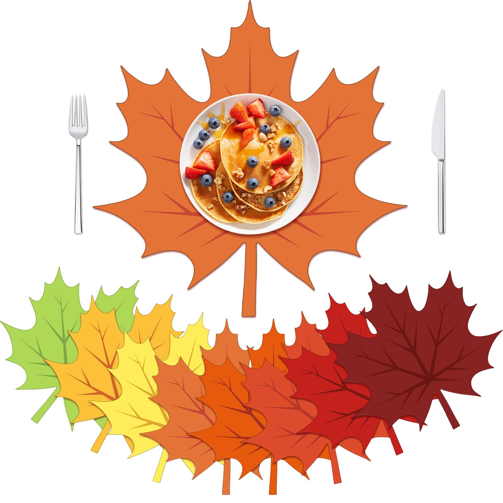 80 Pieces Fall Leaf Placemats Thanksgiving Maple Leaf Placemats 12.6 x 11.8 Inches Harvest Disposable Paper Table Mats Autumn Place Mats for Home Kitchen Dining Table Decorations