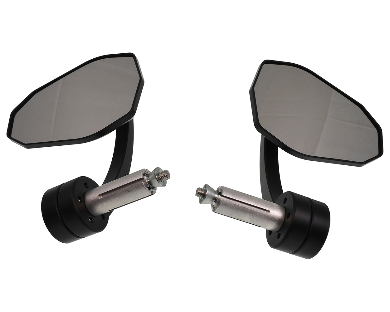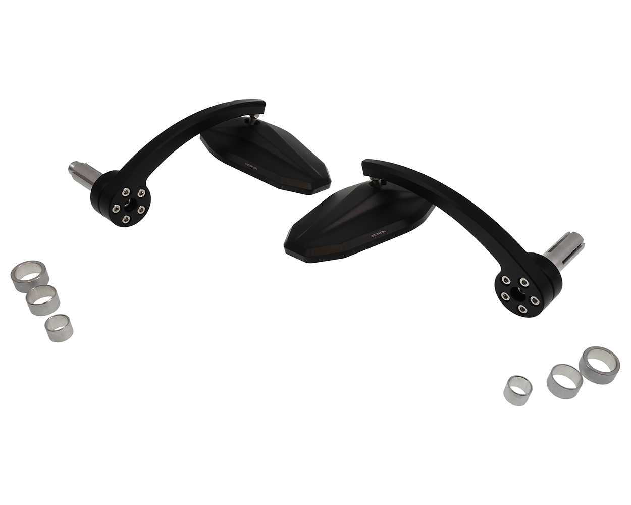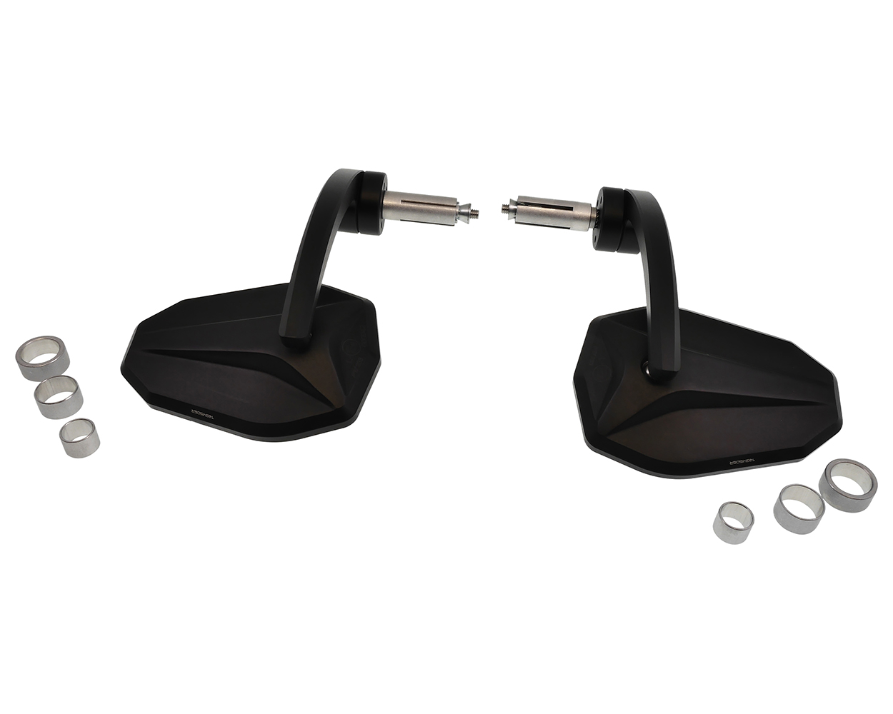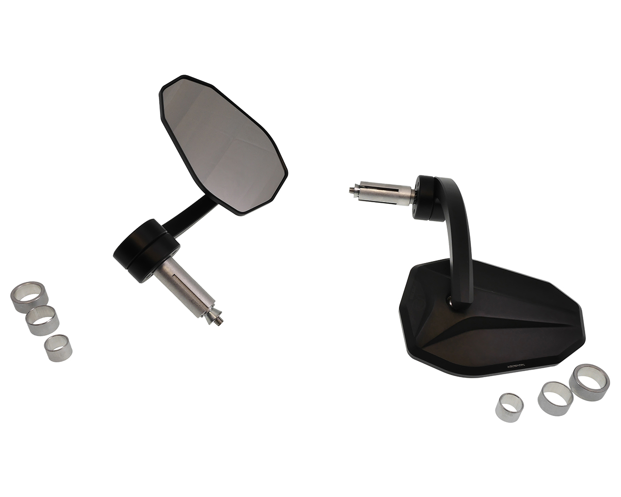 - Lieferumfang: 2x Spiegel, Klemmhülse 16 / 12mm, Distanzhülsen, Zentralschraube M6, Konusmutter M6