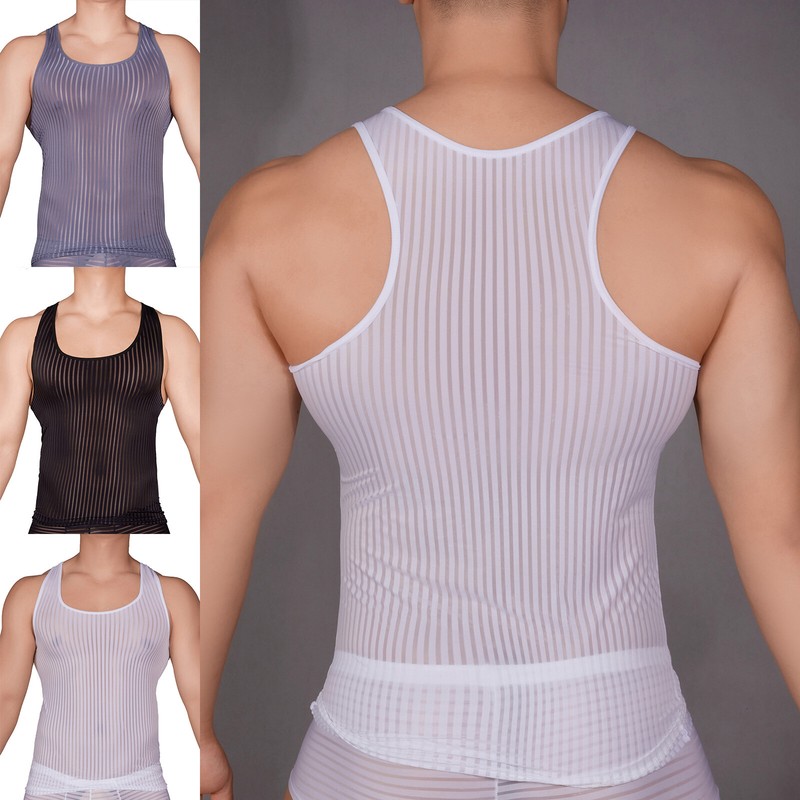 - Sexy mens casual stylish soft mesh shirts, round neck, long sleeves.