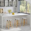 Evoking images of sidewalk tables in the Cote d'Azur, counter stools like this will give your kitchen or patio the casual sophistication of a Mediterranean coastal bistro. Expertly crafted from thick bent rattan for superb durability, it features weather resistant woven plastic in a blue and white striped pattern. This backless counter stool is lightweight for easy mobility with comfort to make the space it's in a frequent gathering place.