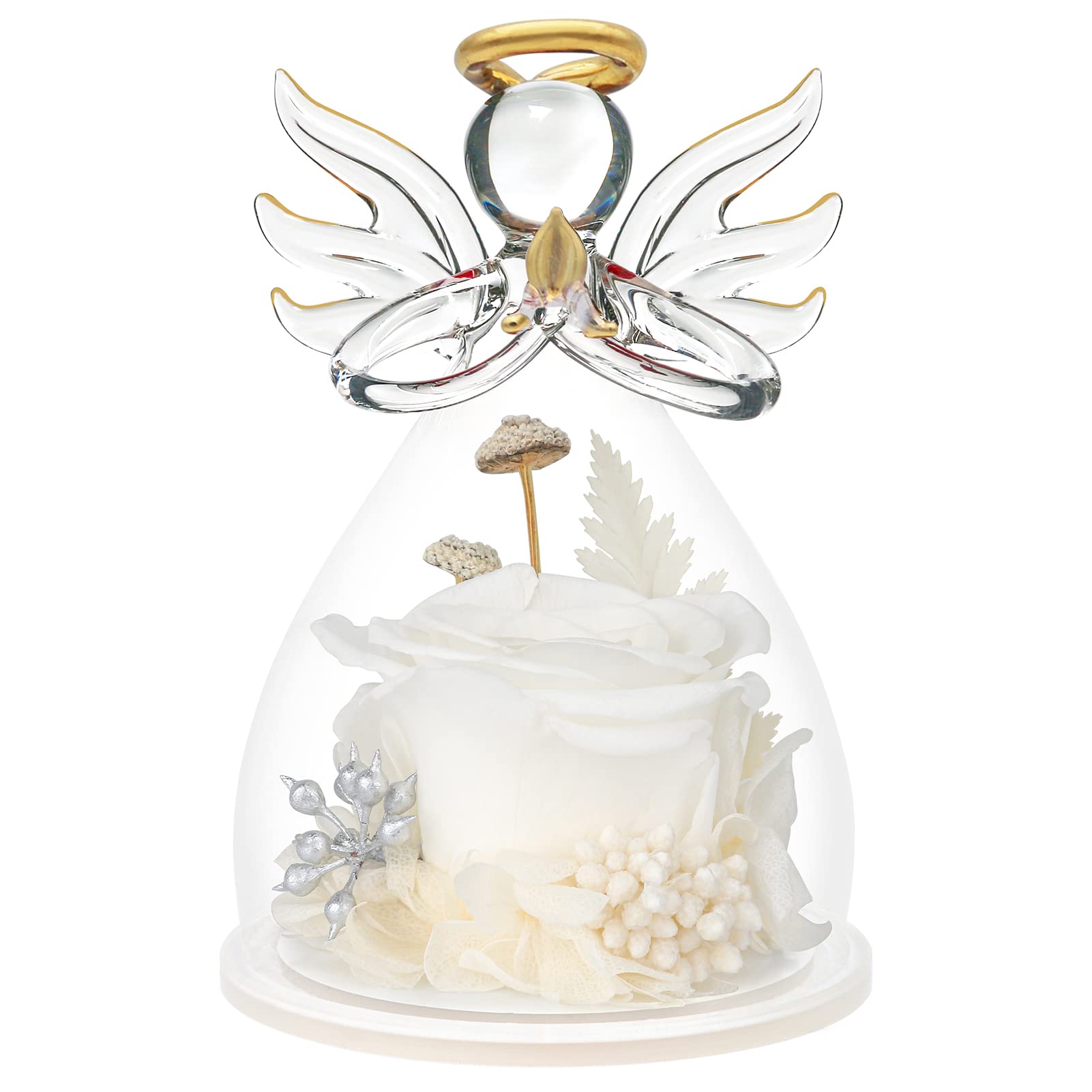 Wonderful Glass Angel Birthday Gifts for Women: Best angel rose gifts from daughter, rose flower gift for her, birthday gifts for women who have everything. Anniversary gifts for wife. Glass Angel Figurines with Real white Rose is a lovely gift that will be cherished by anyone who is special to the giver. Best rose gifts for women, Anniversary, Birthday, Mothers Day or Wedding decorations. Rose flower in glass angel figurines is great gifts for women or anyone who loves angels,flowers and white!