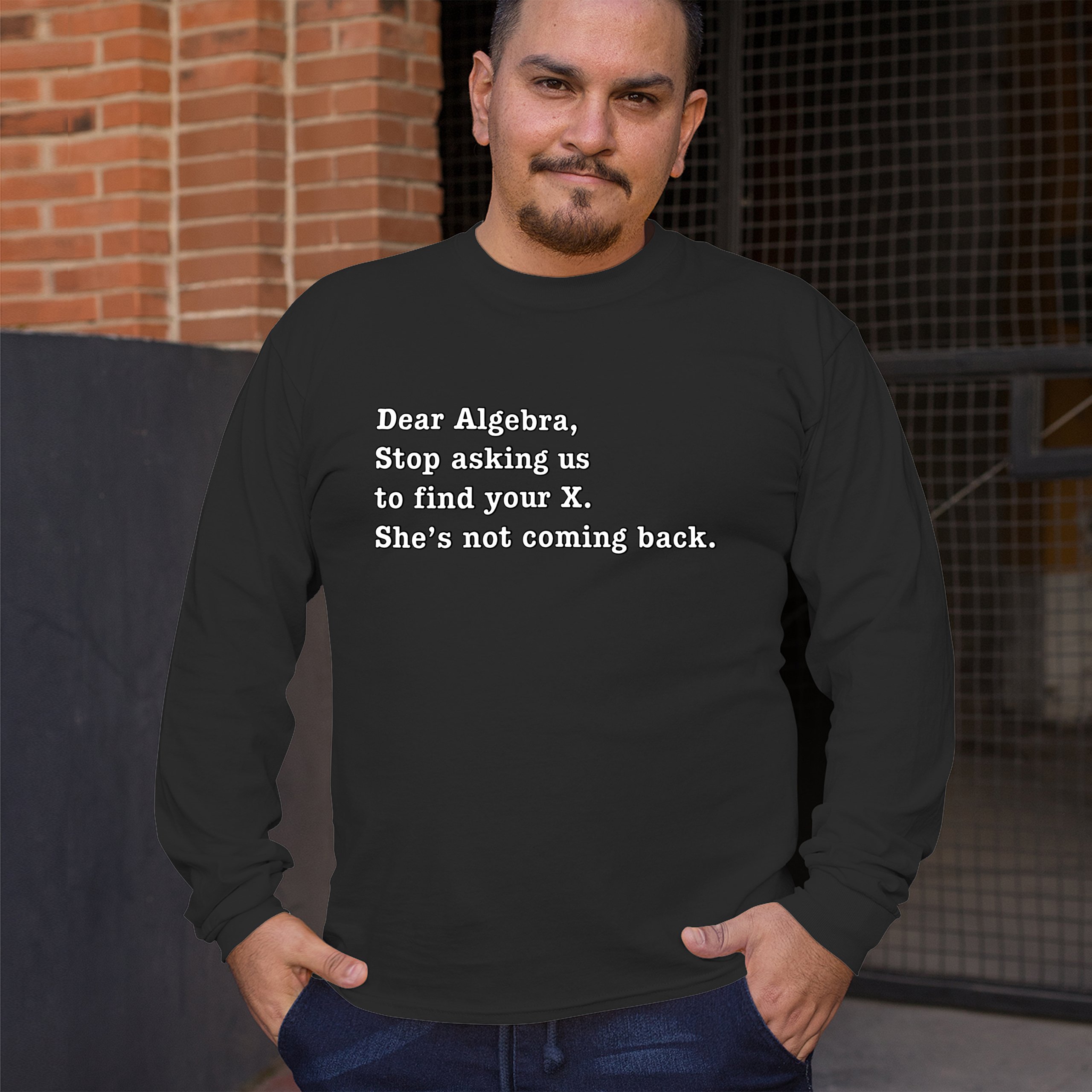 Dear Algebra Stop Asking Us To Find Your X Long Sleeve T-shirt Funny Humor