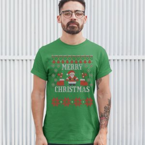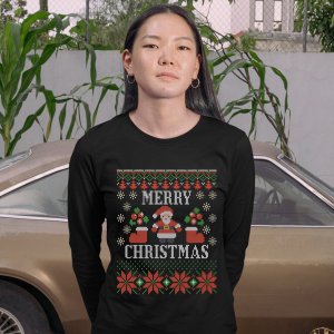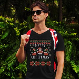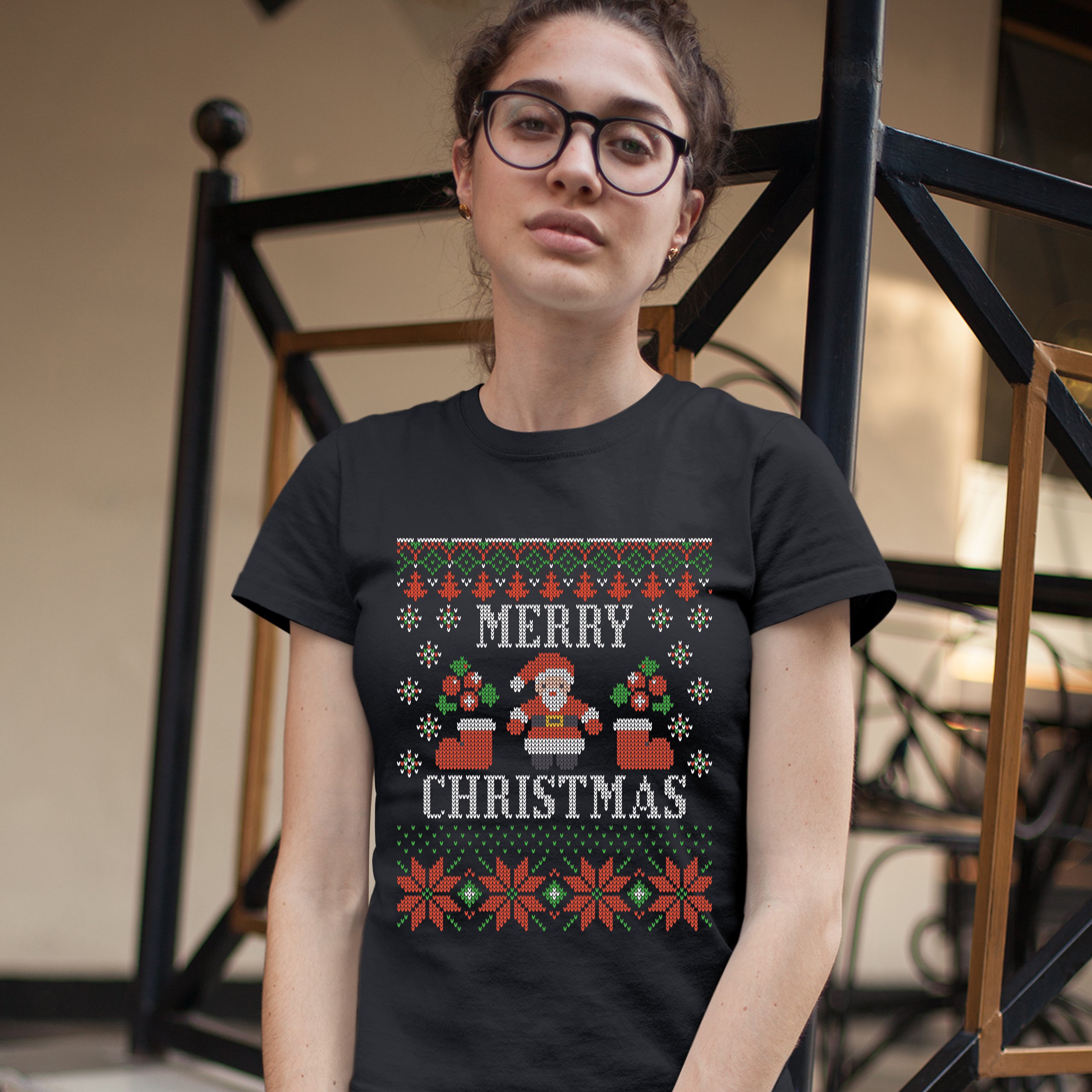 Ugly Sweater Theme Santa Claus T-Shirt Let it Snow Christmas Xmas Women's Tee