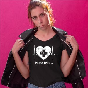 Nursing Heartbeat Women's V-Neck T-shirt CPR First Aid Medical Assistant Tee