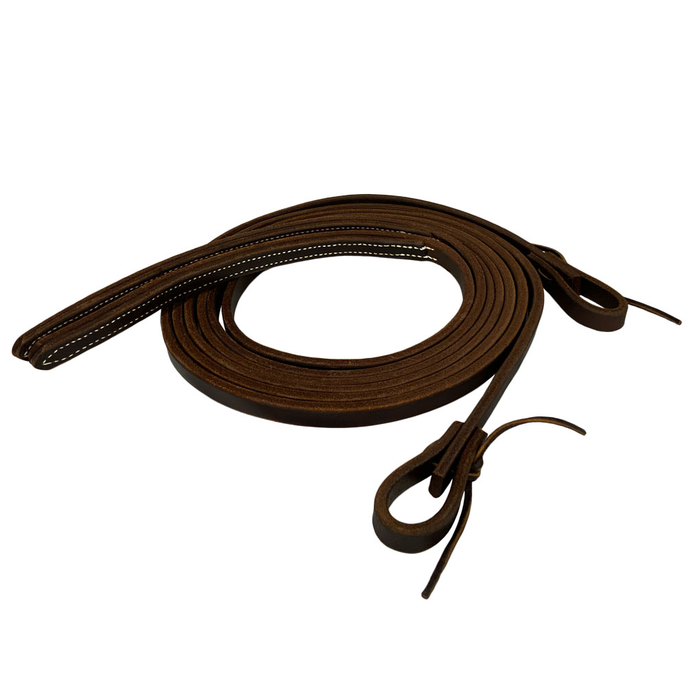 These 8' x 5/8" harness leather split reins are the premier choice for the correct weight and feel in the hand. They feature waterloop ends allowing the rider to change the bit without any tools. Riding with weighted split reins gives your horse slack, helps your horse feel the weight of the reins, and amplifies rider cues because of the weighted drape of the split rein. These oiled harness leather reins will stay soft and protected for years and are perfect for riding events or everyday use. Made in the USA.