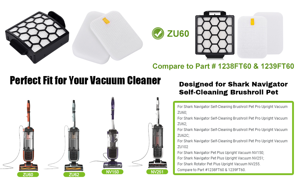 Compare to Part #1238FT60 & 1239FT60.To keep your navigator vacuum cleaner work at the peak performance, it's recommend that the replacement filters should be replaced every 3-6 months.
